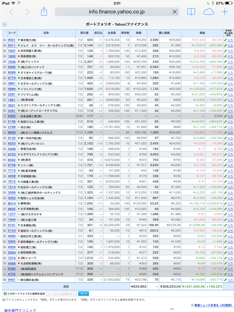豊嶋康子ミニ投資【合計】___¥ 829,892(+169.22%)