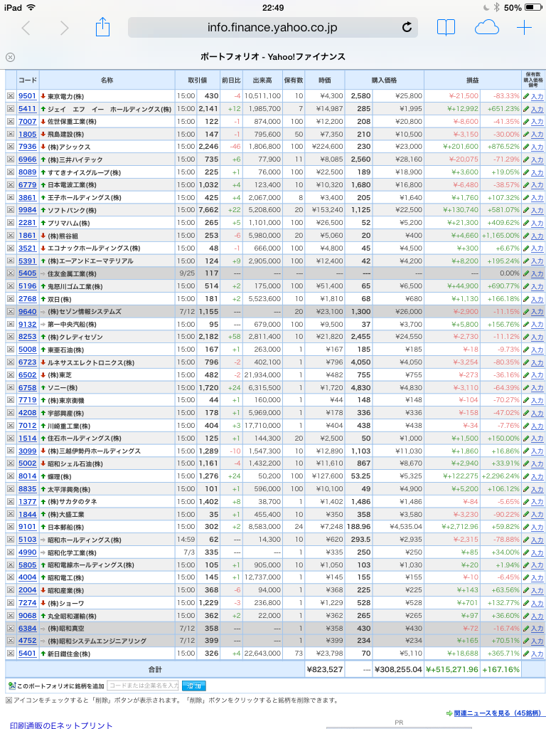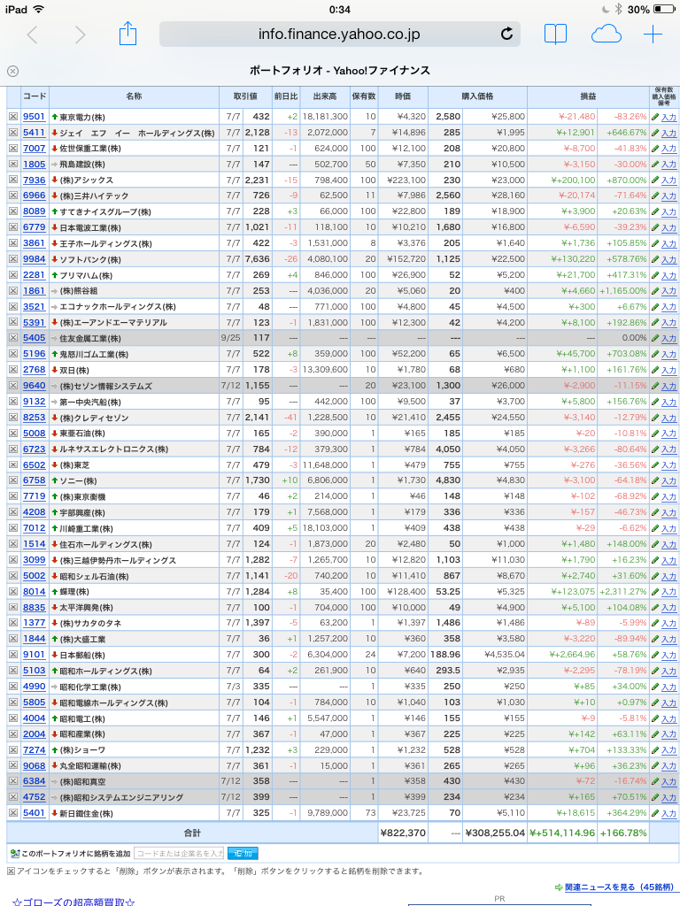 豊嶋康子ミニ投資【合計】___¥822,370 (+166.78%)