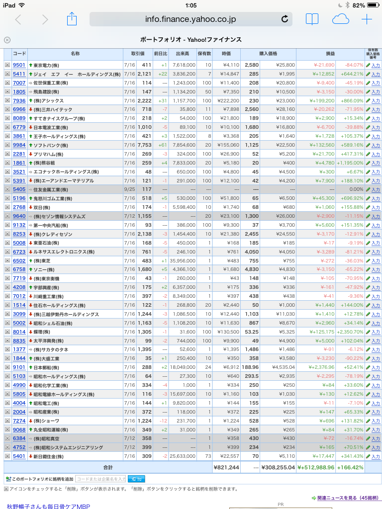 豊嶋康子ミニ投資【合計】___¥821,244(+166.42%)