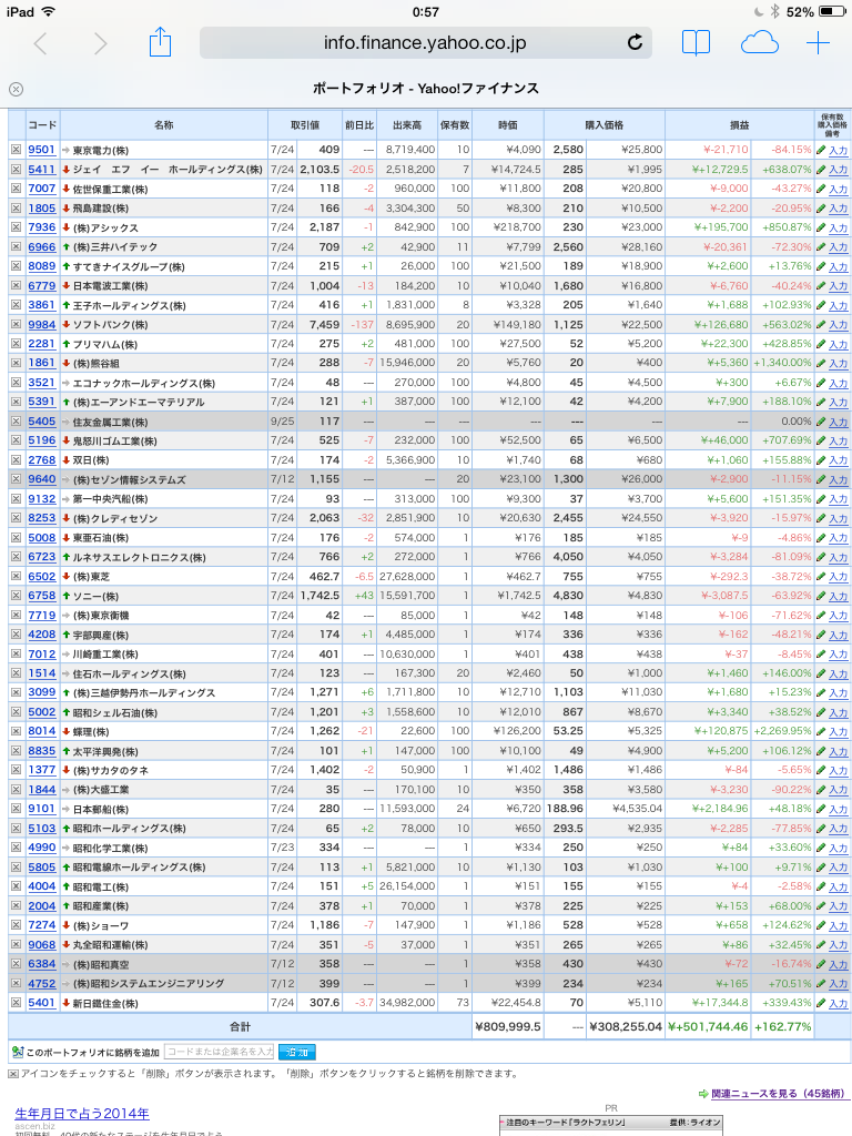 豊嶋康子ミニ投資【合計】___¥814,288 (+164.16%)