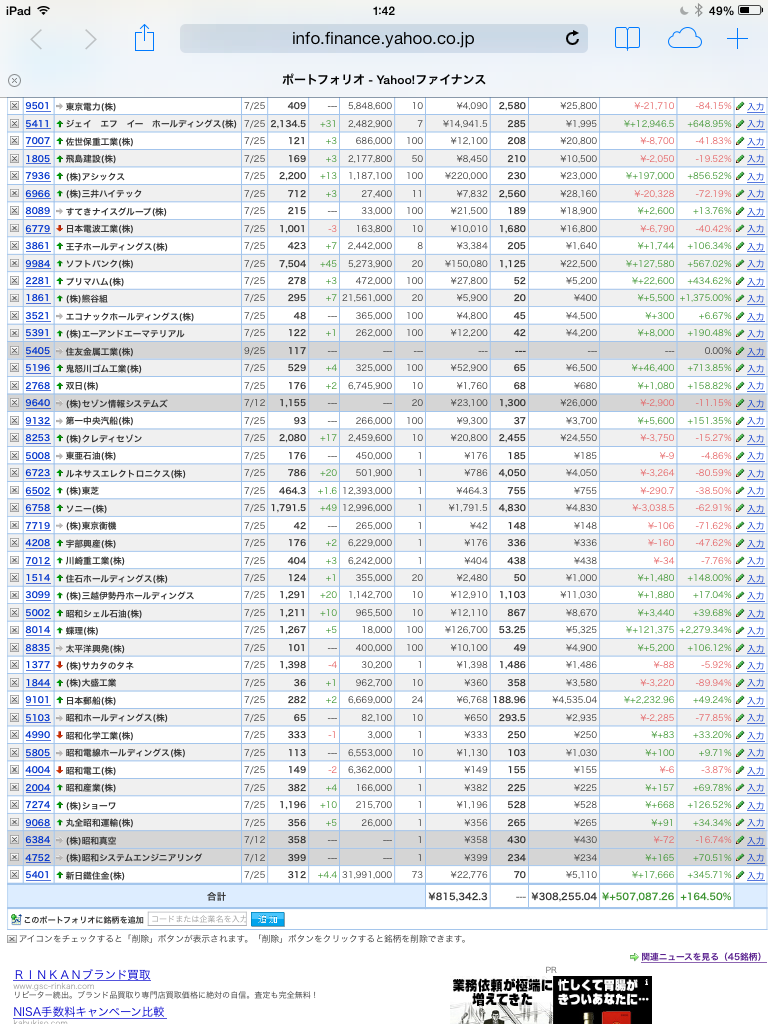 豊嶋康子ミニ投資【合計】___¥\815,342.3(+164.50%)