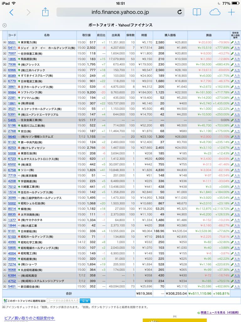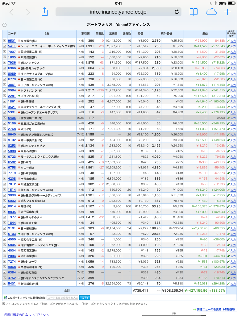 豊嶋康子ミニ投資【合計】___¥735,411(138.57%)
