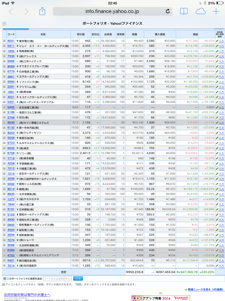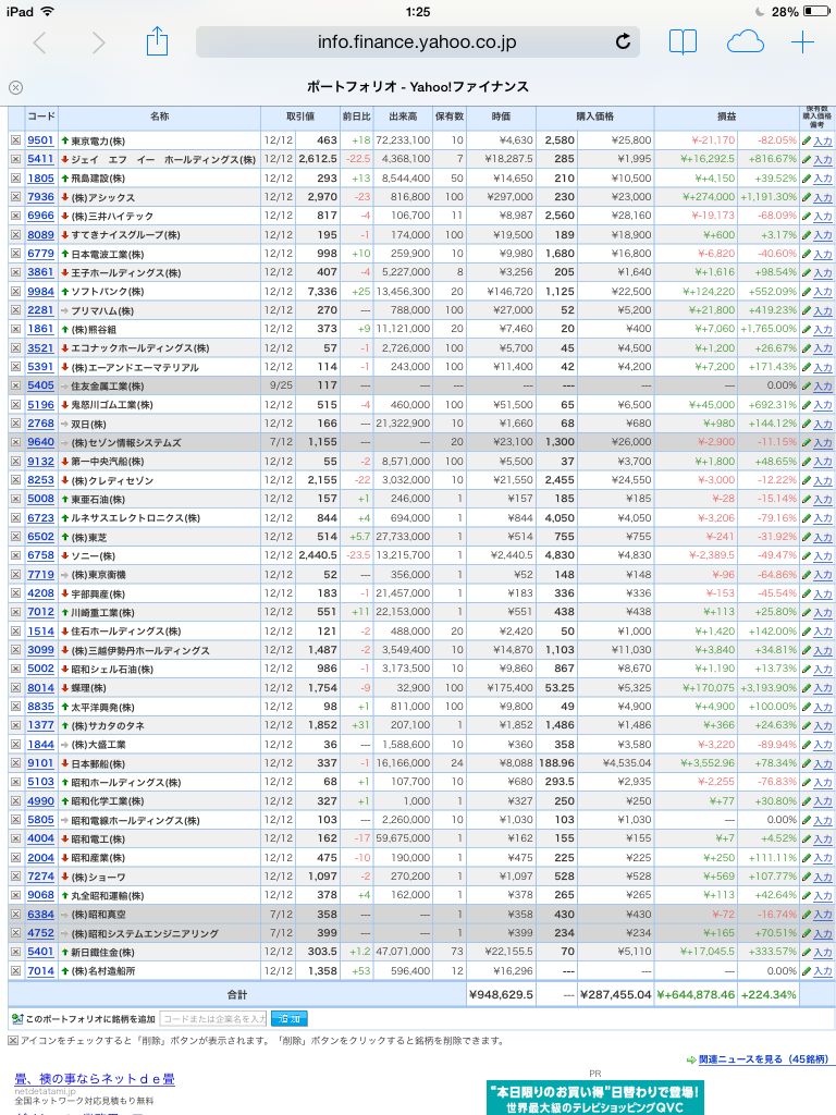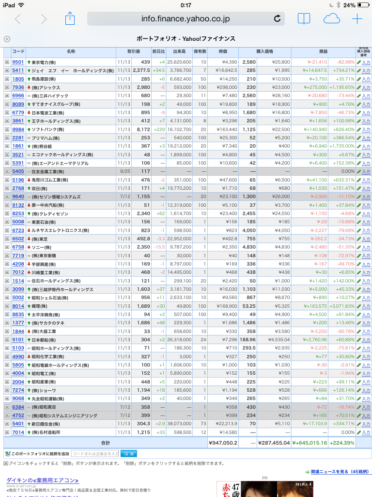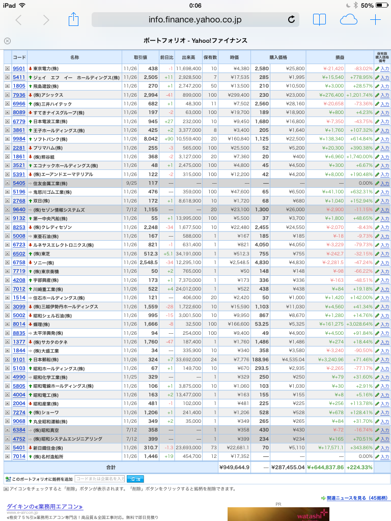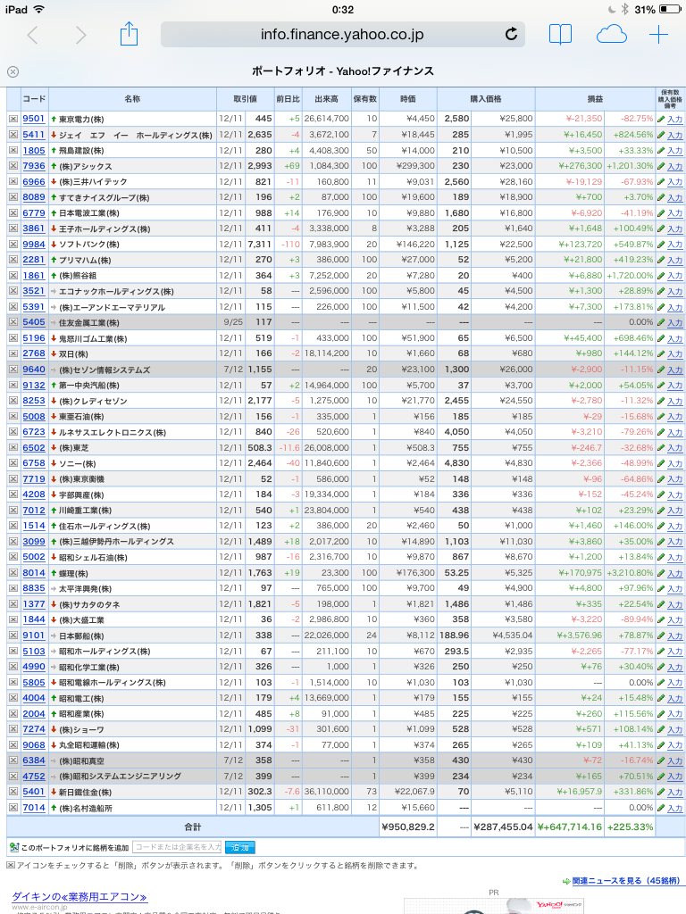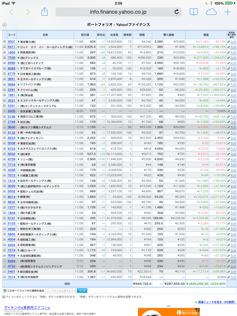 購入した株式は売却しません。変化を見続けます_という作品です。: 豊嶋康子ミニ投資【合計】___¥949,644.9(+224.33%)