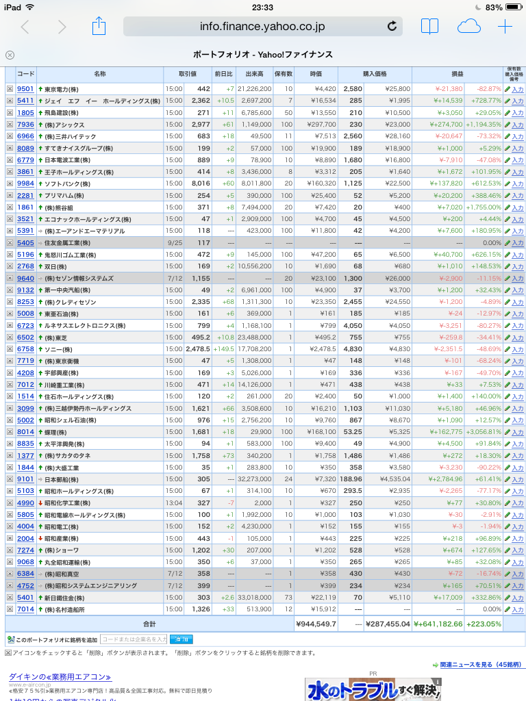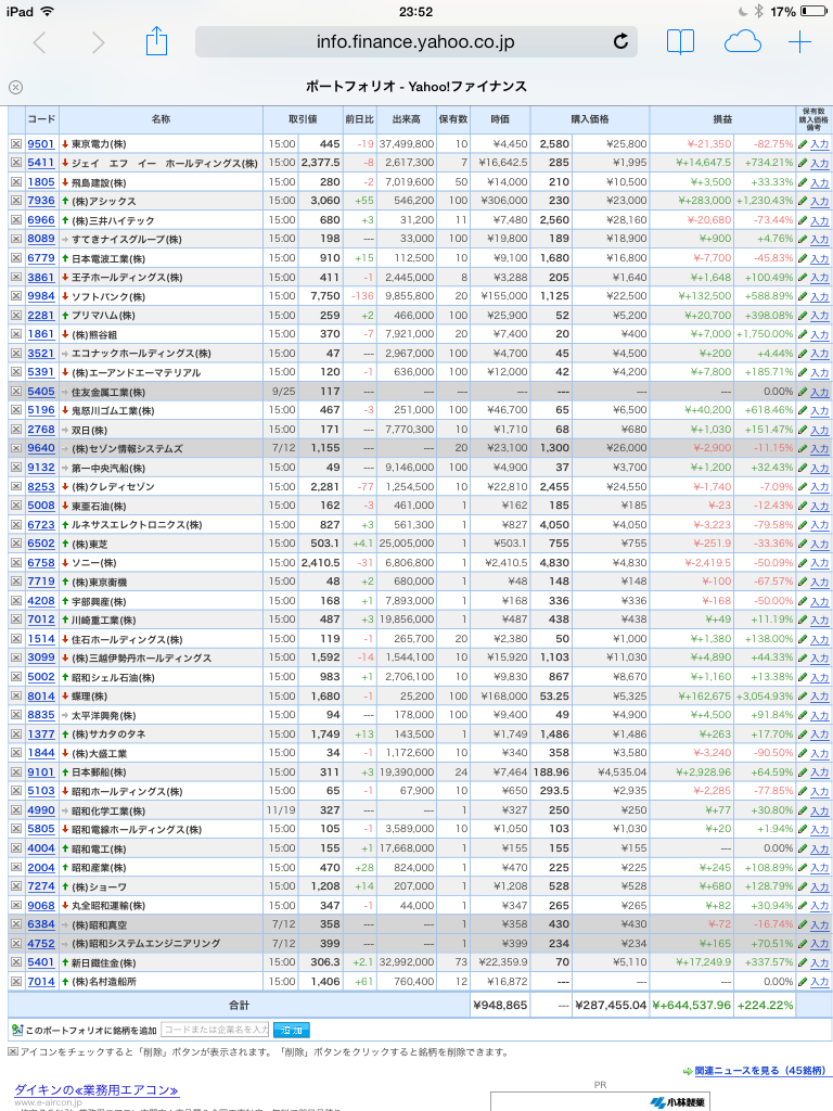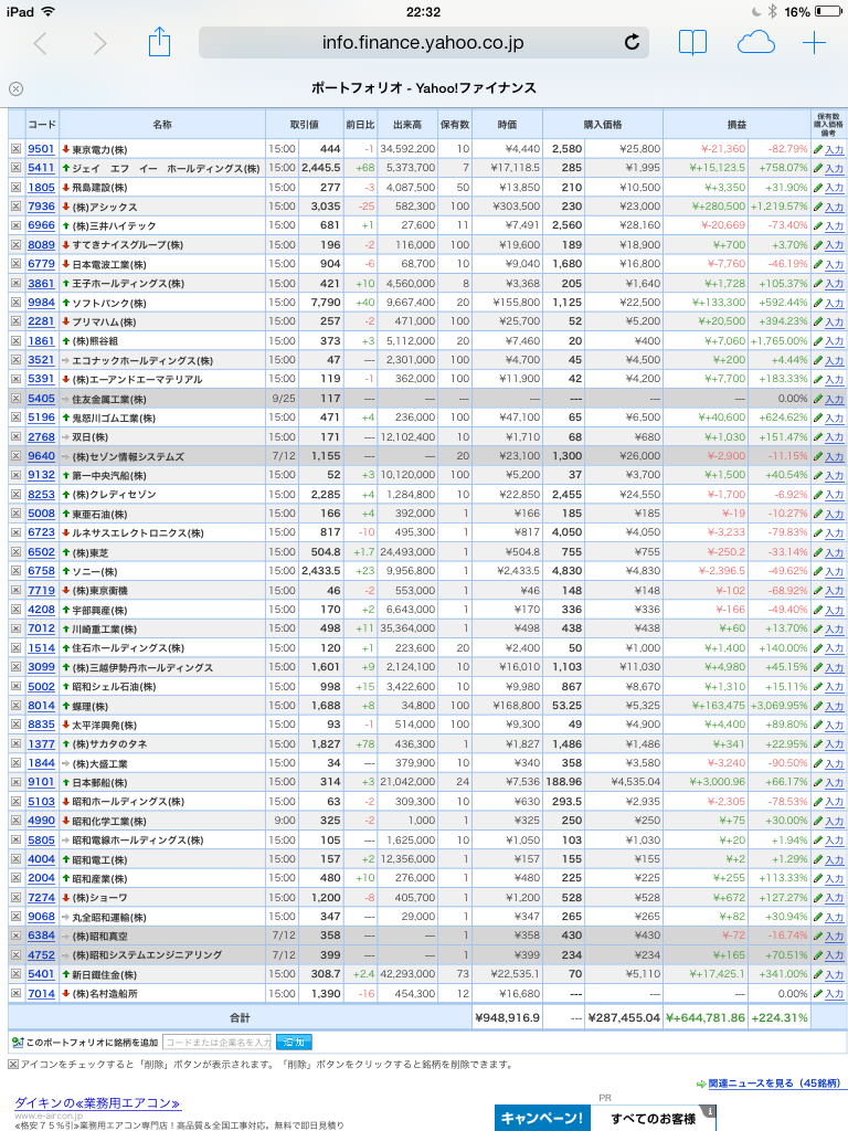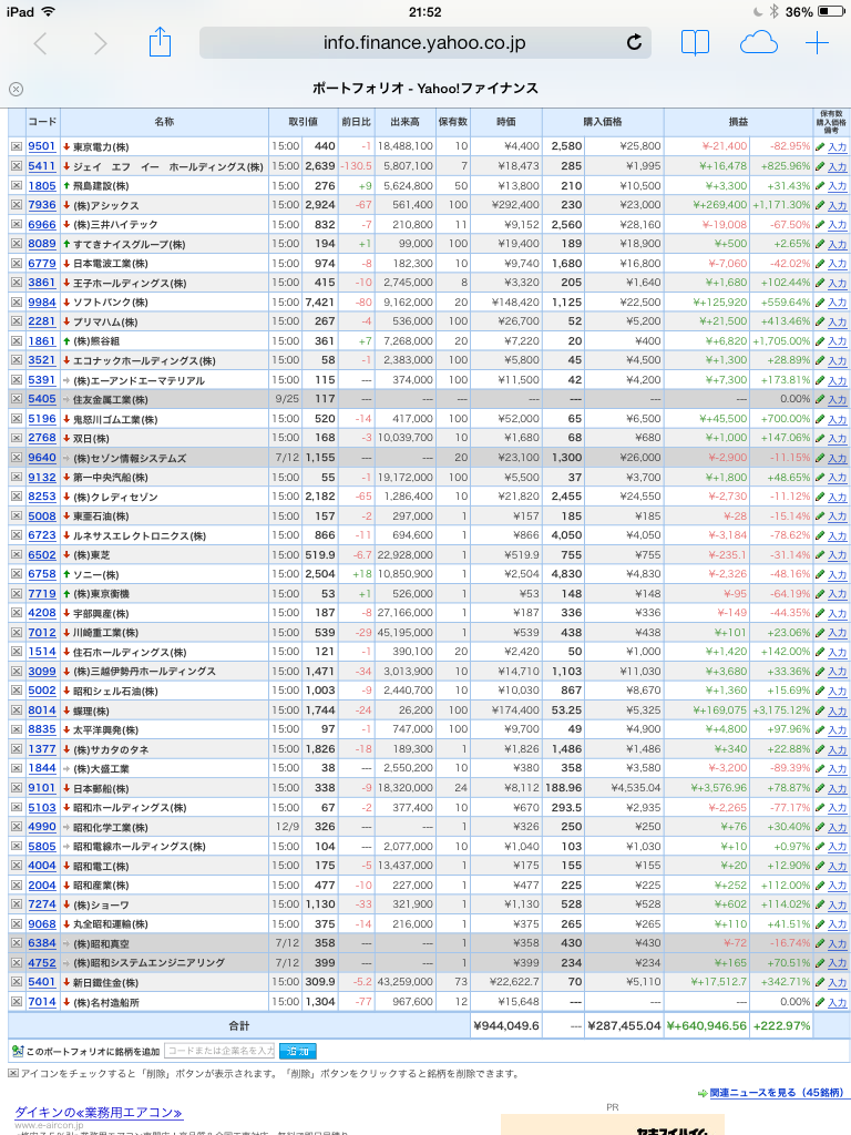 作品です。作品です。購入した株式は投機のための売却はしません。: 豊嶋康子ミニ投資【合計】___¥944,049.6(+222.97%)