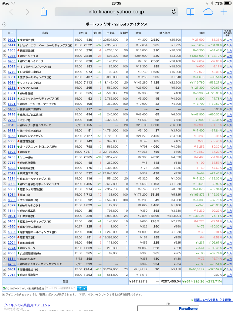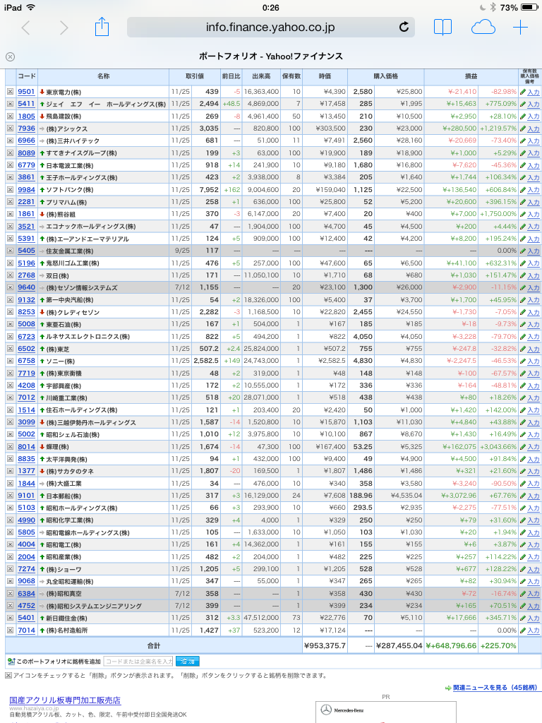 作品です。購入した株式は売却しません。変化を見続けます:豊嶋康子ミニ投資【合計】___¥953,375.7(+225.70%)