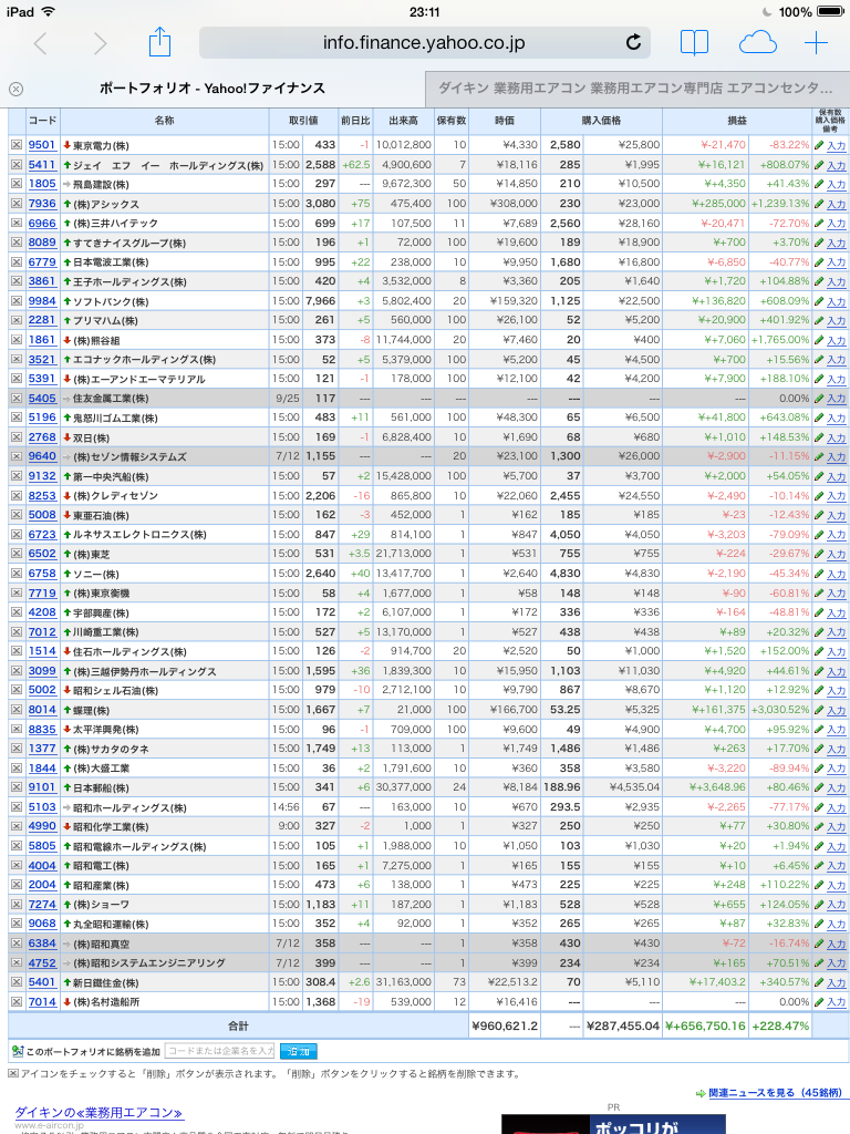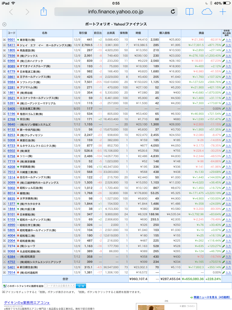 作品です。購入した株式は売却しません。変化を見続けます: 豊嶋康子ミニ投資【合計】___¥960,621.2(+228.47%)