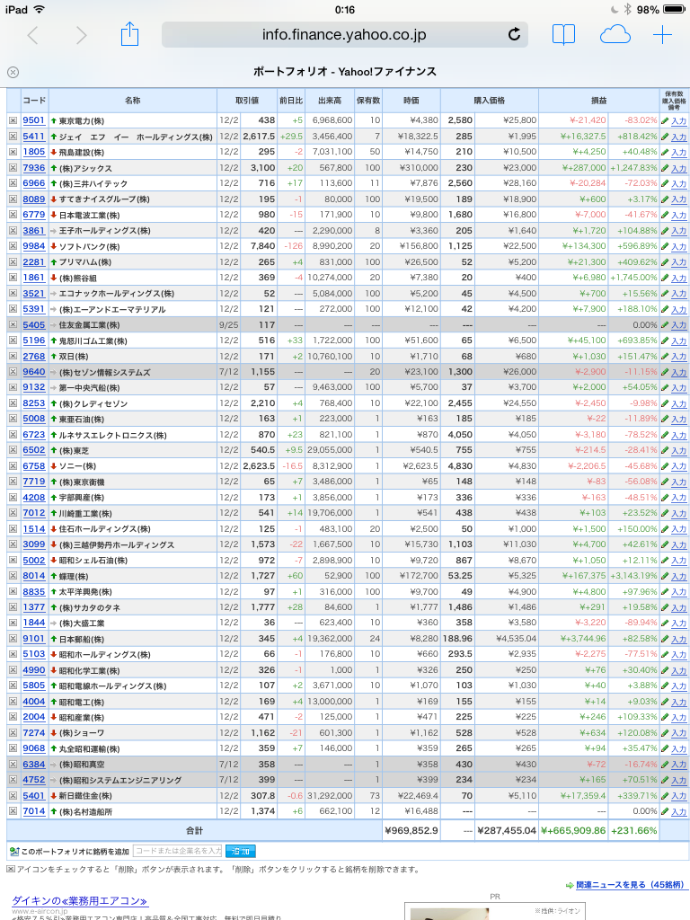 作品です。購入した株式は売却しません。変化を見続けます: 豊嶋康子ミニ投資【合計】___¥969,852.9(+231.66%)