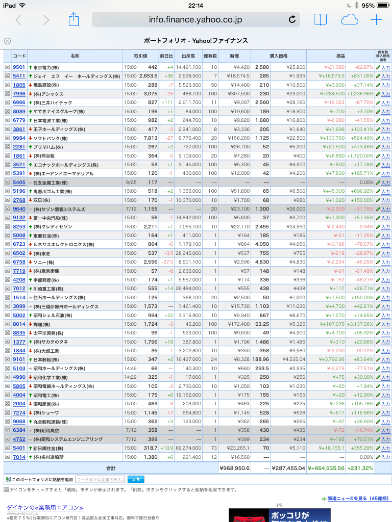 作品です。購入した株式は売却しません。変化を見続けます: 豊嶋康子ミニ投資【合計】___¥968,950.6(+231.32%) english