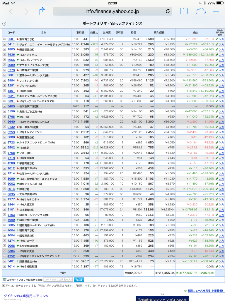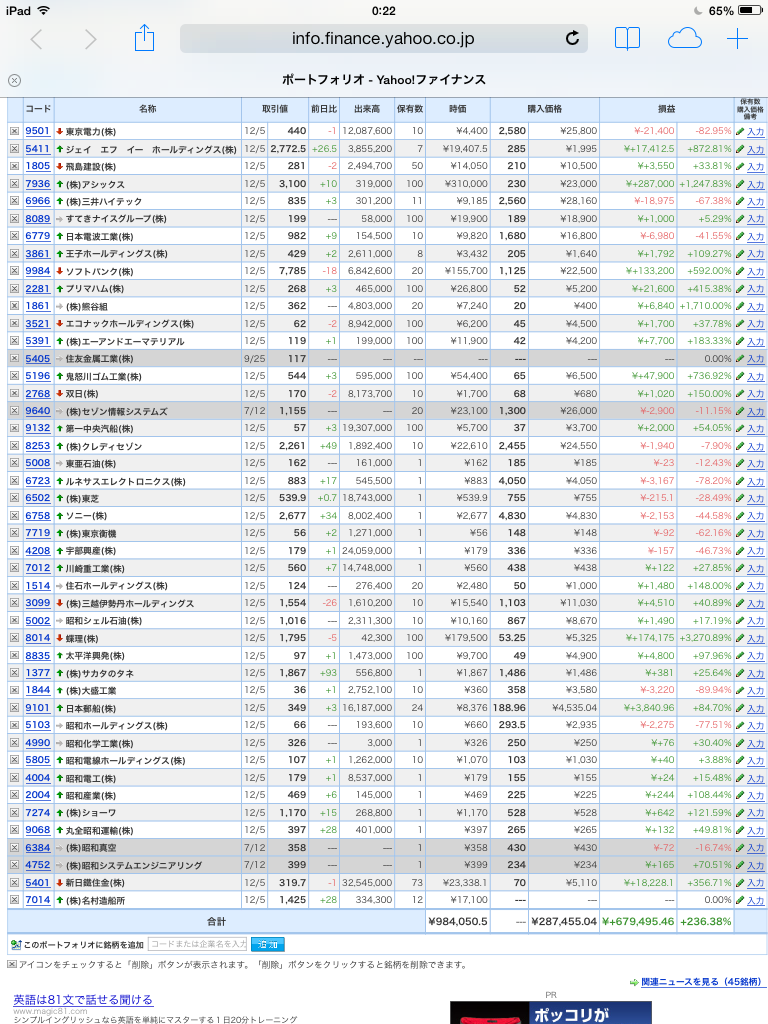 作品です。購入した株式は投機のための売却はしません。 :豊嶋康子ミニ投資【合計】___¥984,050.5(+236.38%)