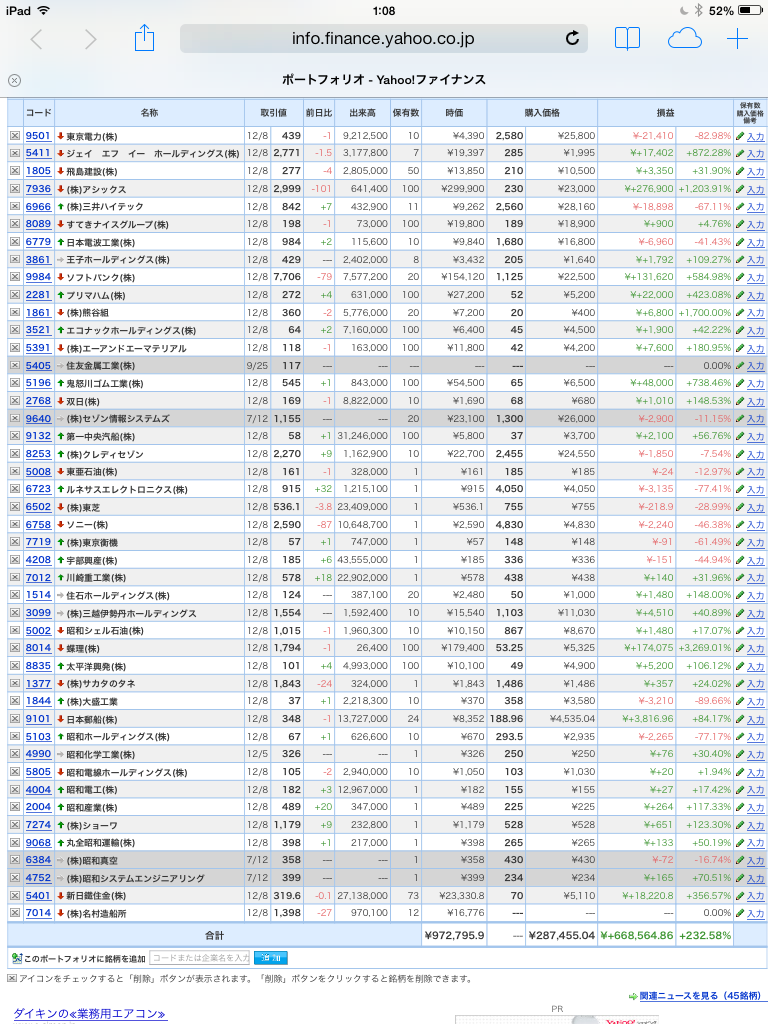 作品です。購入した株式は投機のための売却はしません。: 豊嶋康子ミニ投資【合計】___¥972,795.9(+232.58%)