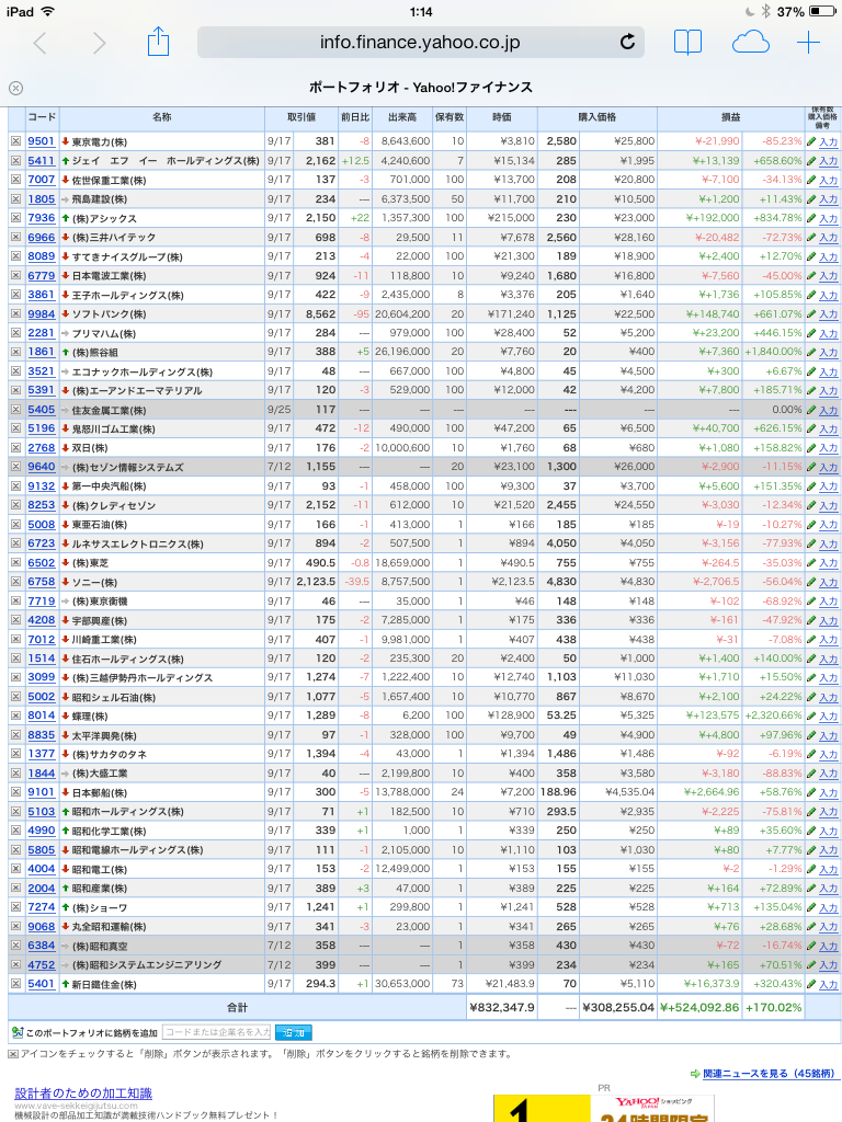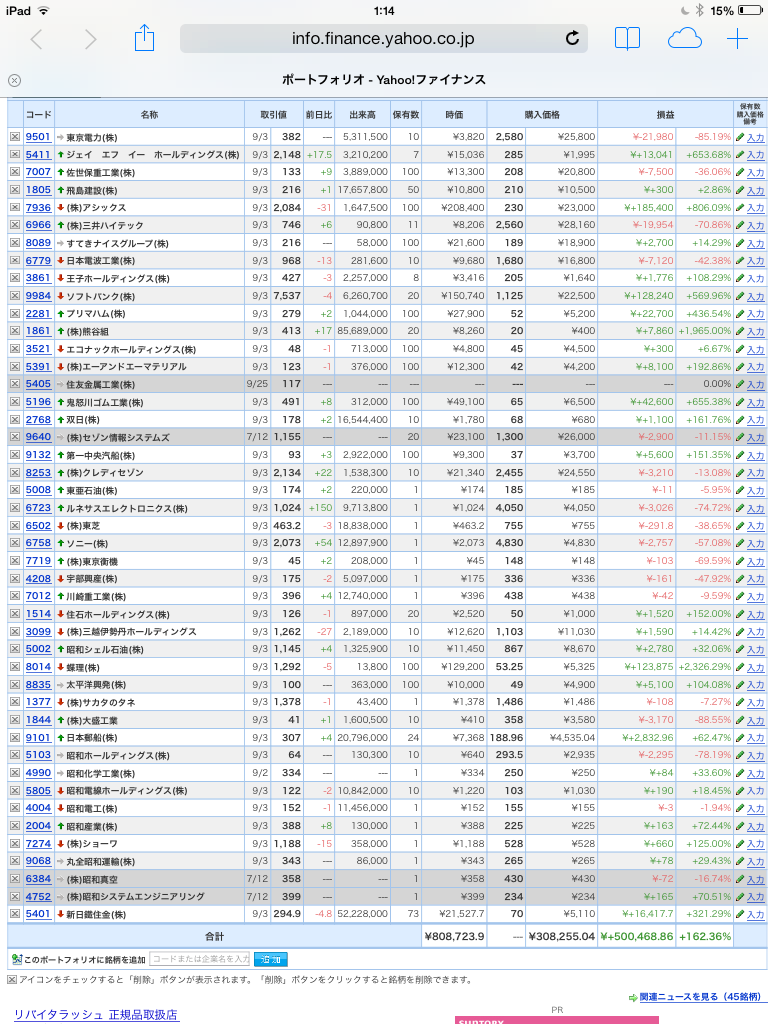 豊嶋康子ミニ投資【合計】___¥861,139.5(+179.36%)