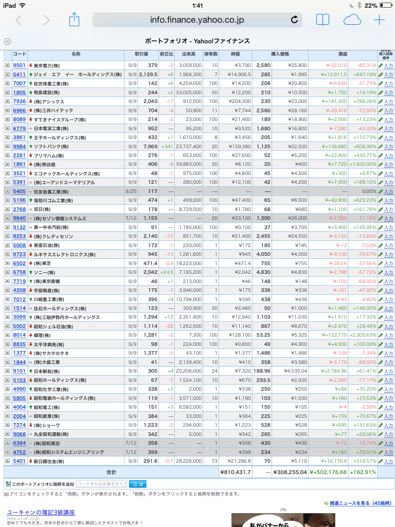 豊嶋康子ミニ投資【合計】___¥862,022(+179.65%)