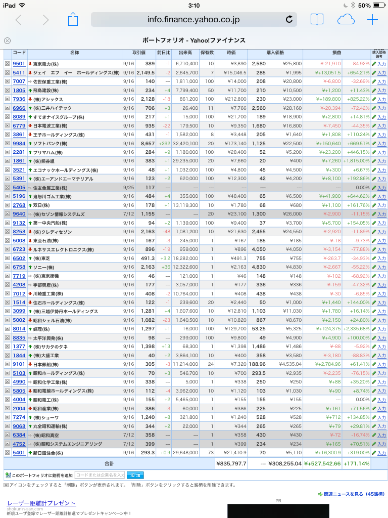 豊嶋康子ミニ投資【合計】___¥835,797.7(+171.14%)