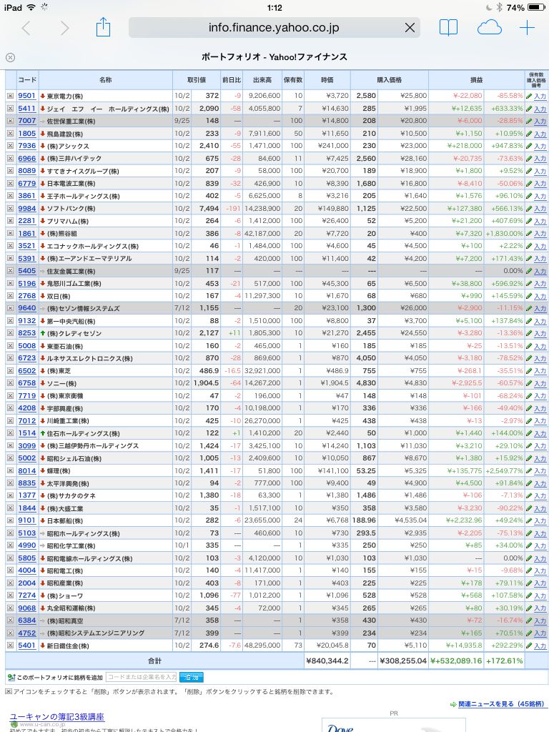 豊嶋康子ミニ投資【合計】___¥840,077.4(+172.53%)