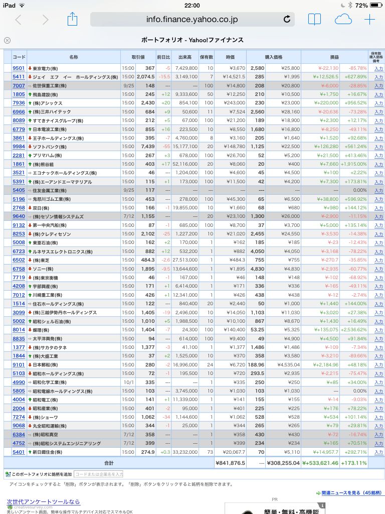 豊嶋康子ミニ投資【合計】___¥841,876.5(+173.11%)