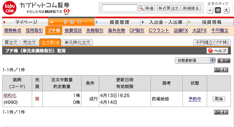 4990_1株予約_昭和化学工業 成行