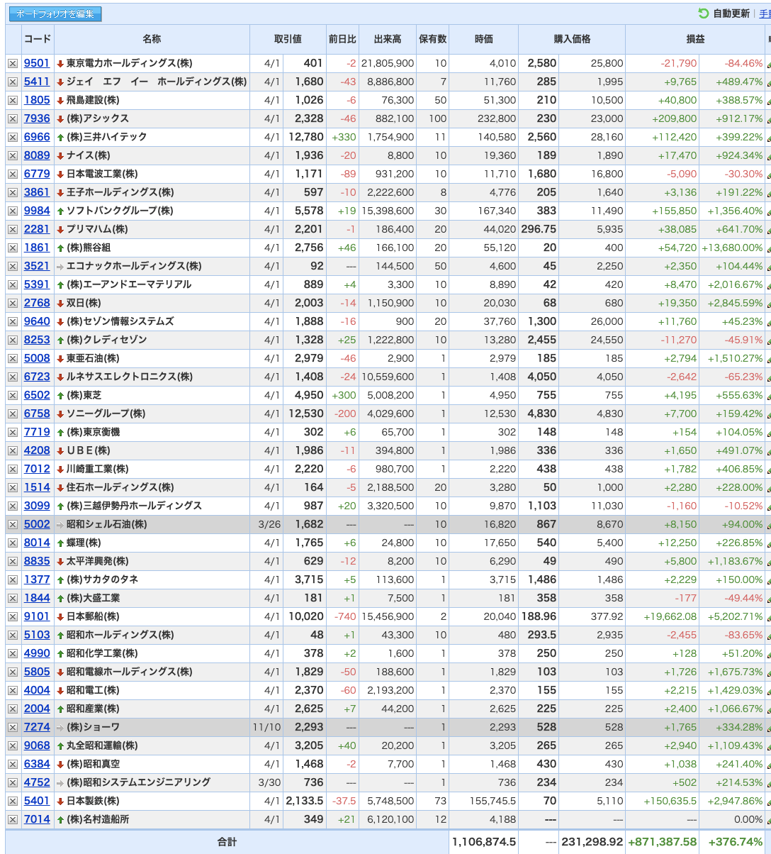 豊嶋康子ミニ投資___¥1,106,874.5(+376.74%)