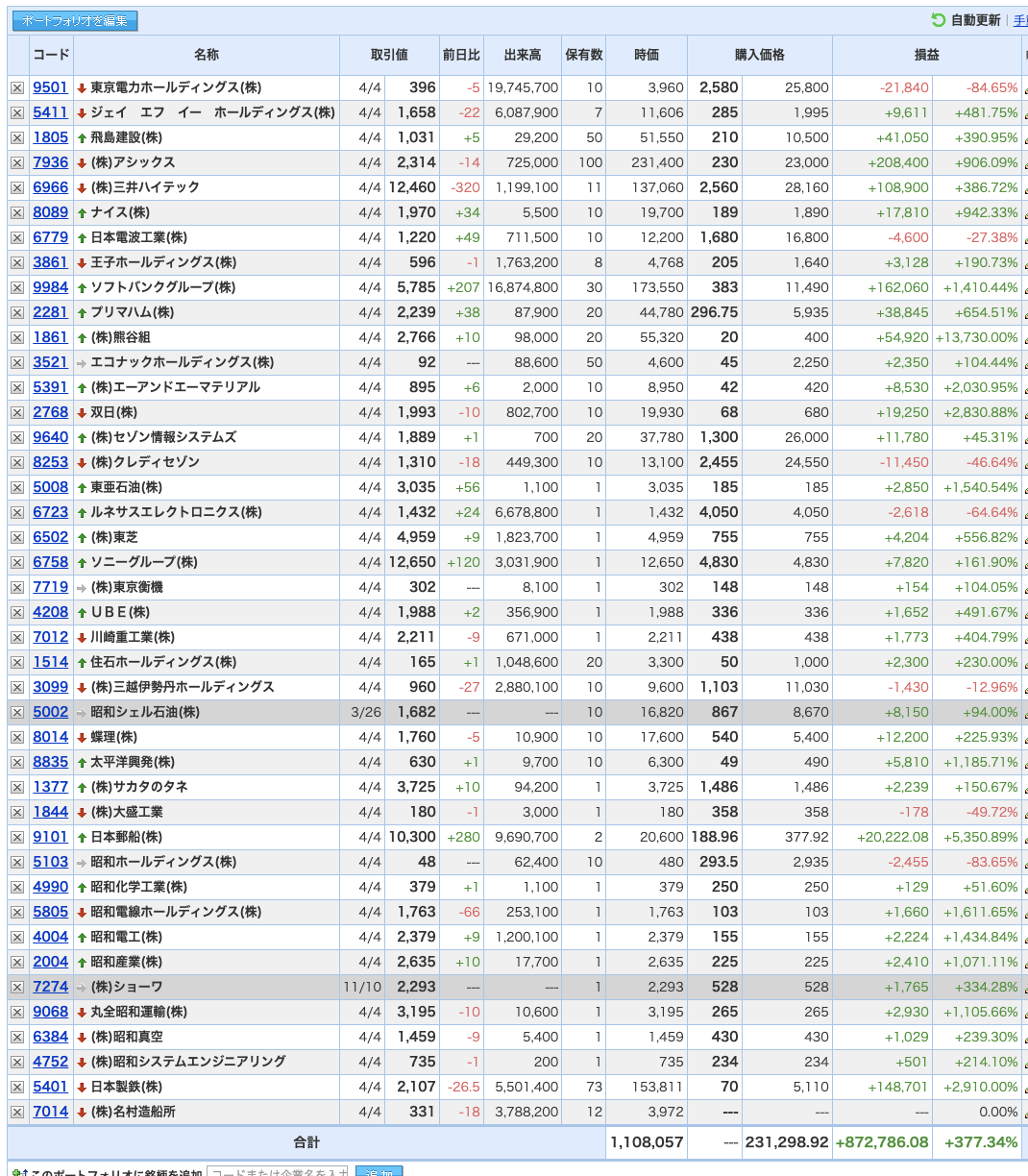豊嶋康子ミニ投資___¥1,108,057(+377.34%)