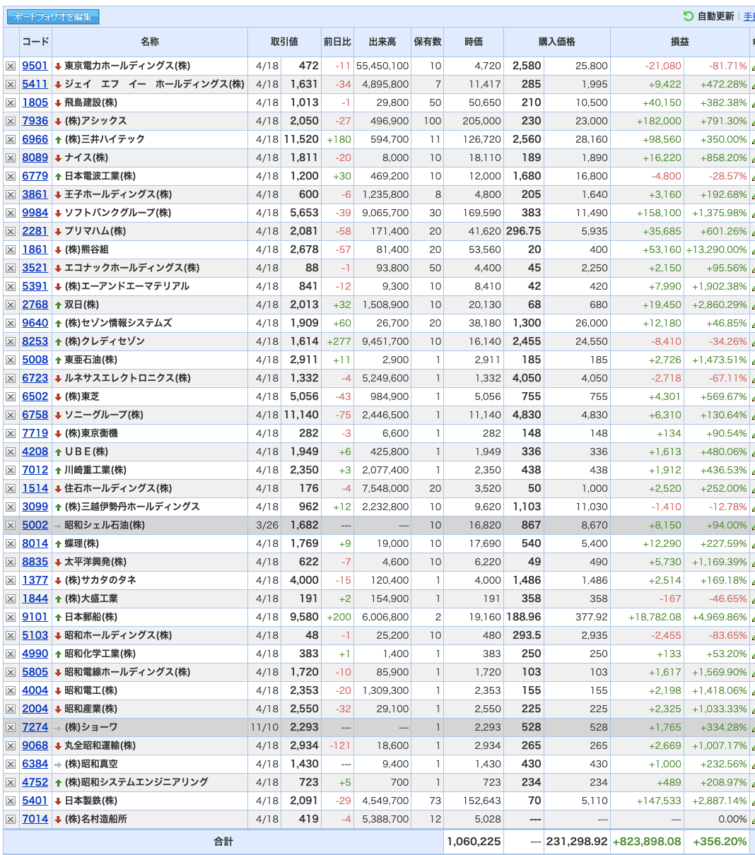 豊嶋康子ミニ投資___¥1,060,225(+356.20%)