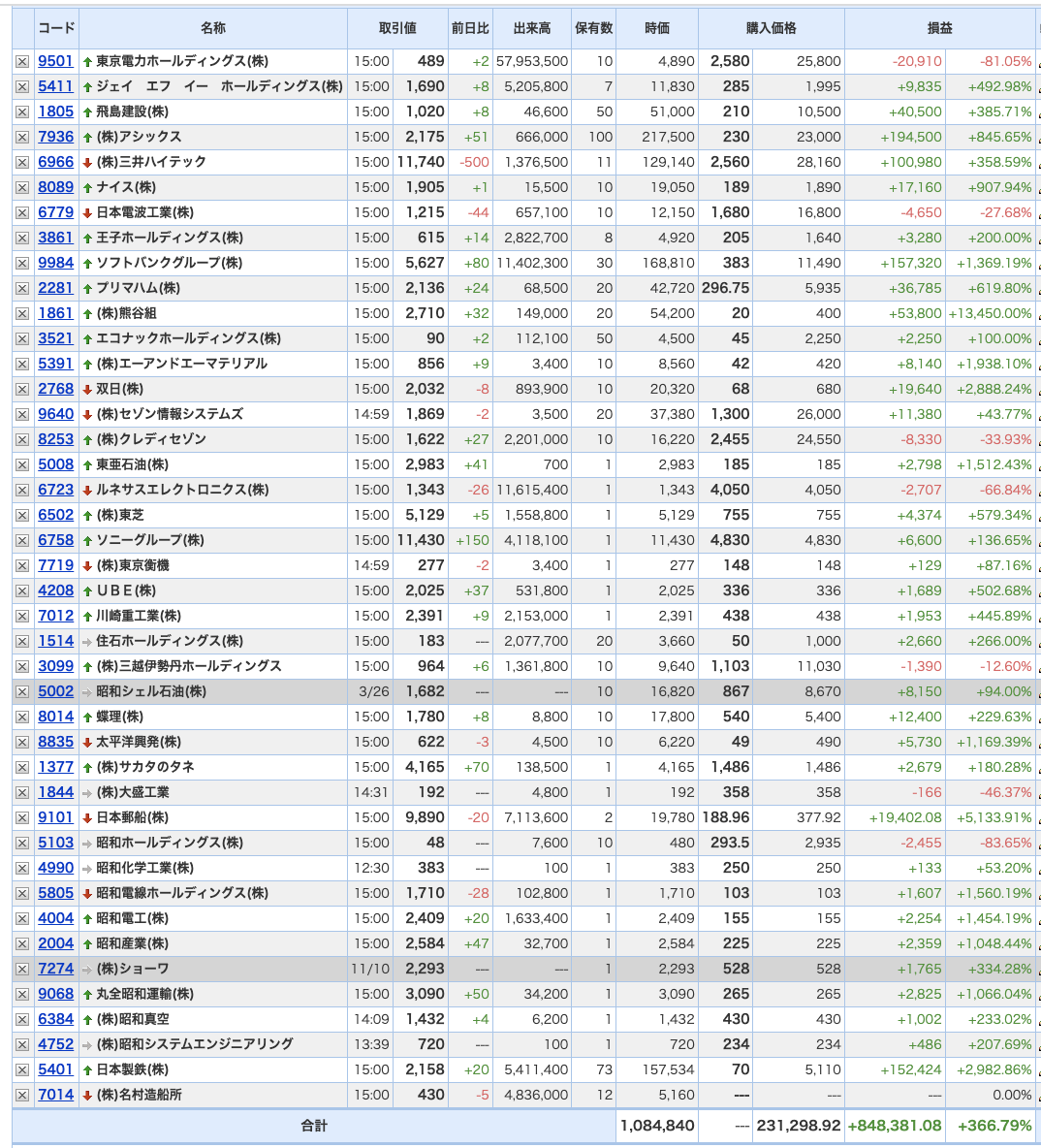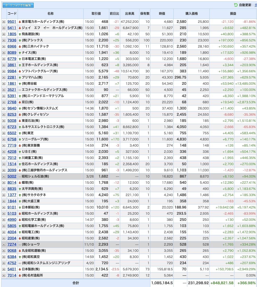 豊嶋康子ミニ投資___¥1,084,840(+366.79%)