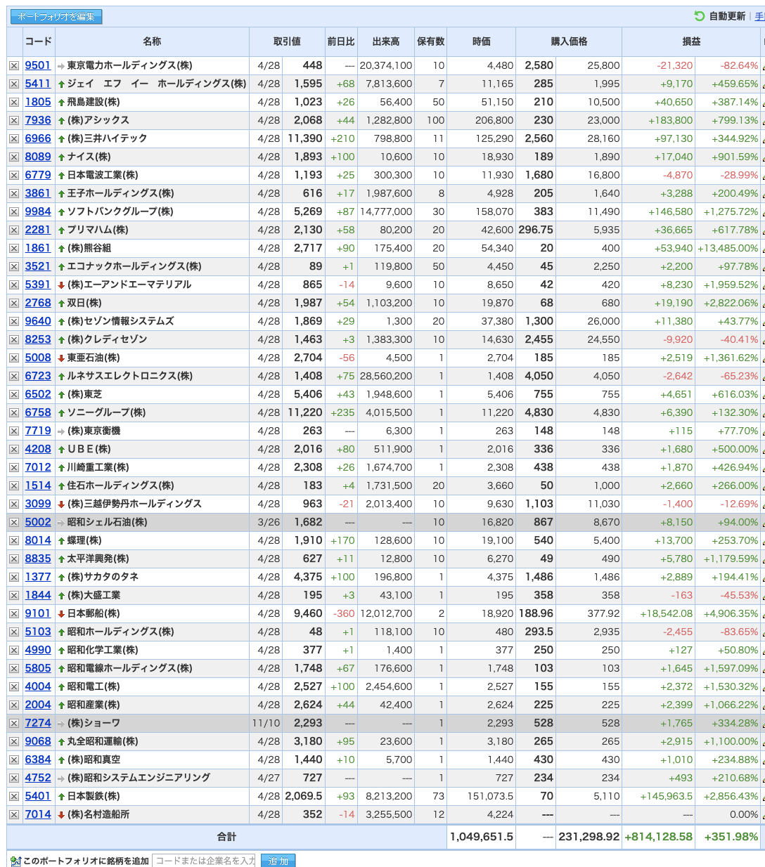 豊嶋康子ミニ投資___¥1,049,651.5(+351.98%)