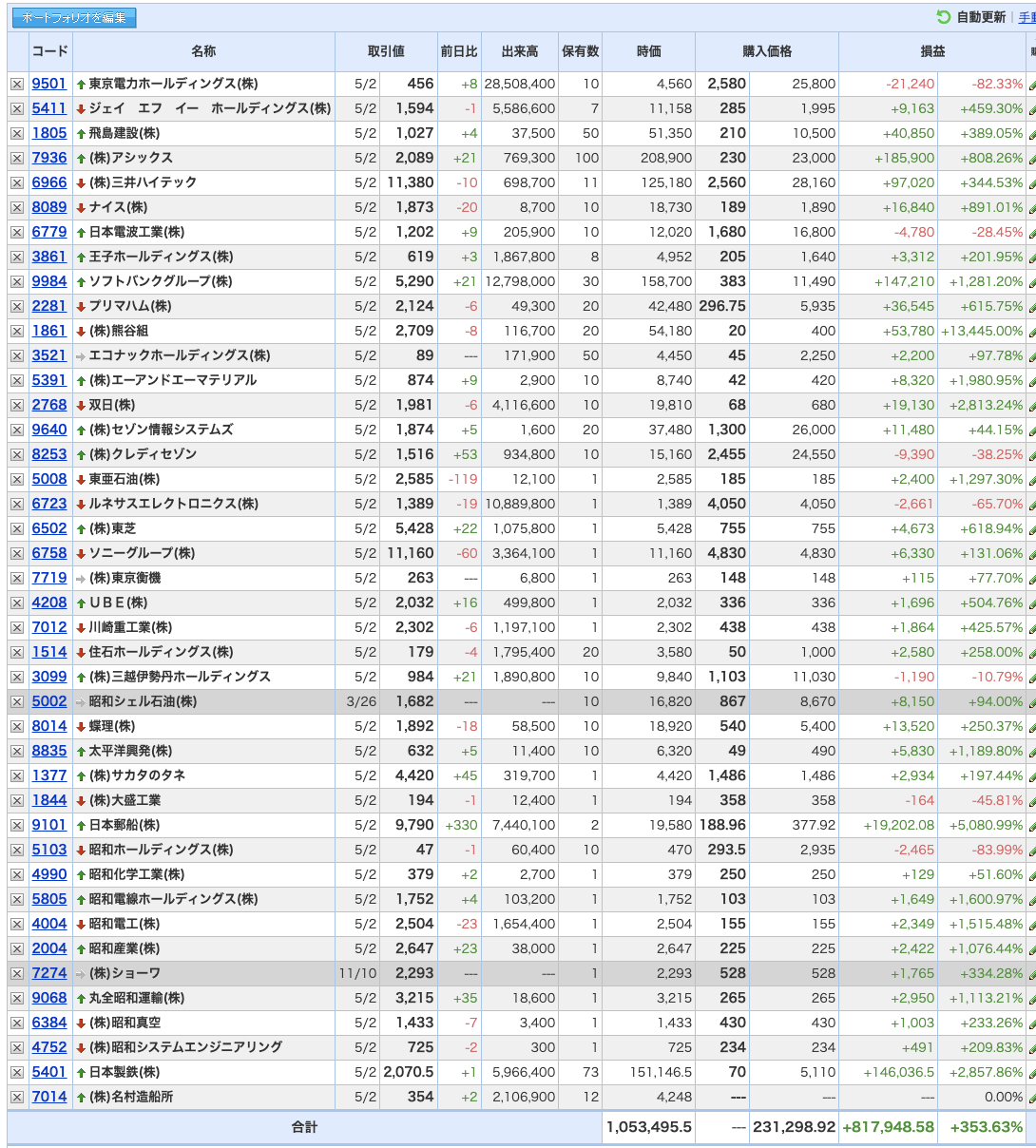 豊嶋康子ミニ投資___¥1,053,495.5(+353.63%)