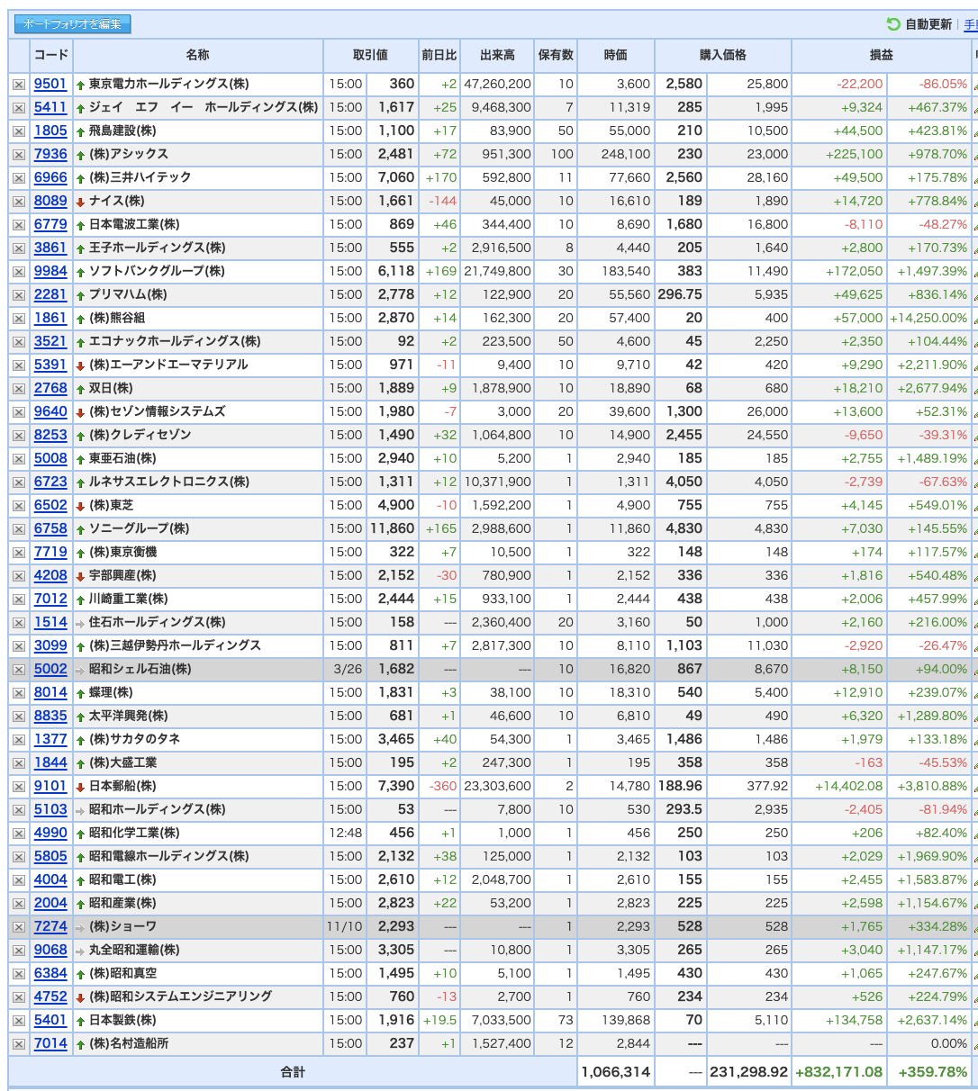豊嶋康子ミニ投資___¥1,066,314(+359.78%)