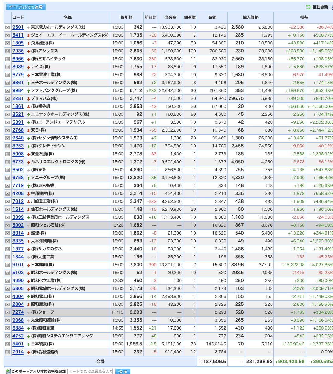 豊嶋康子ミニ投資___¥1,137,612(+390.65%)