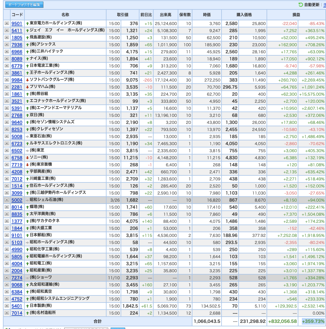 豊嶋康子ミニ投資___¥1,068,734(+360.87%)