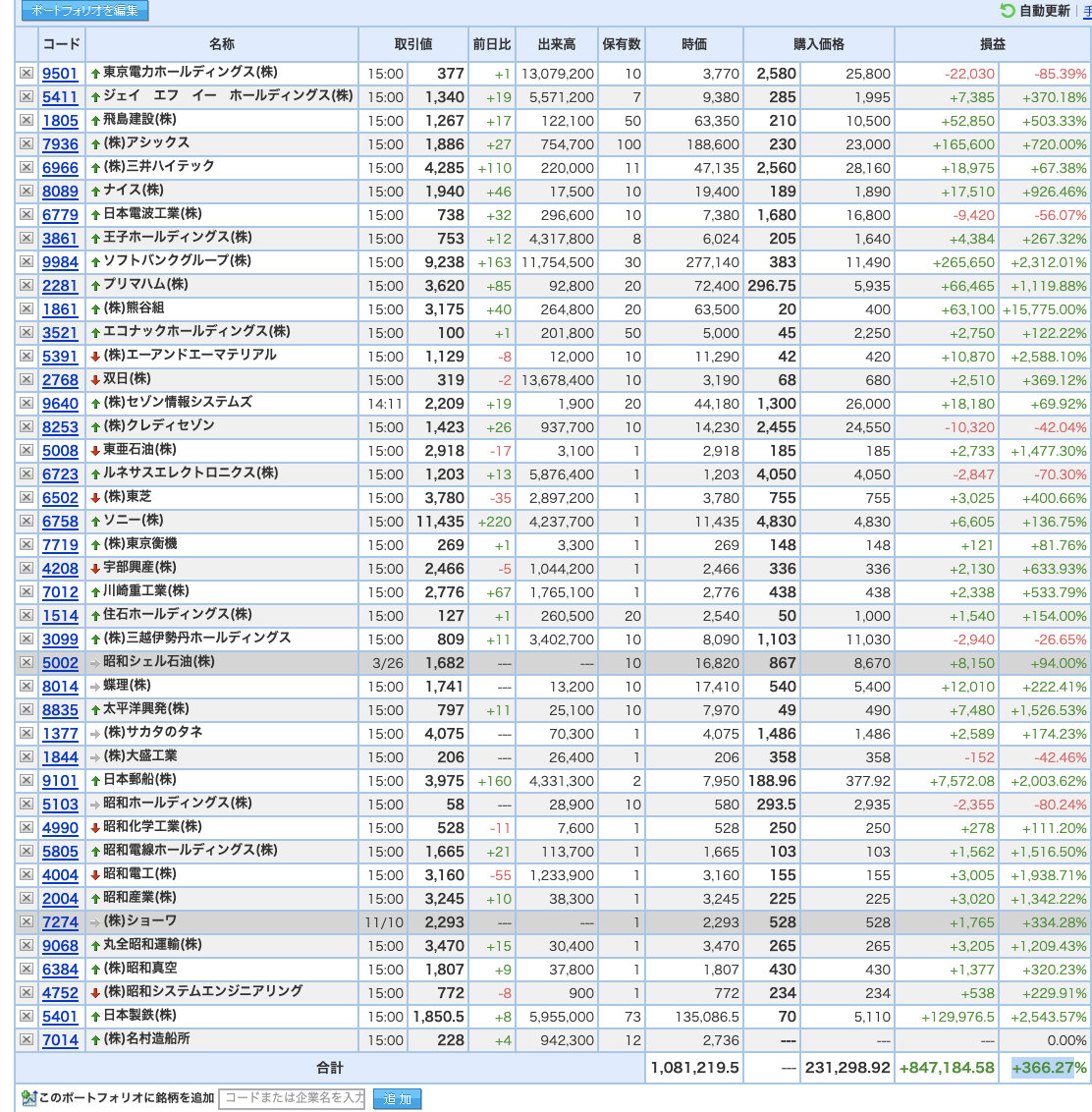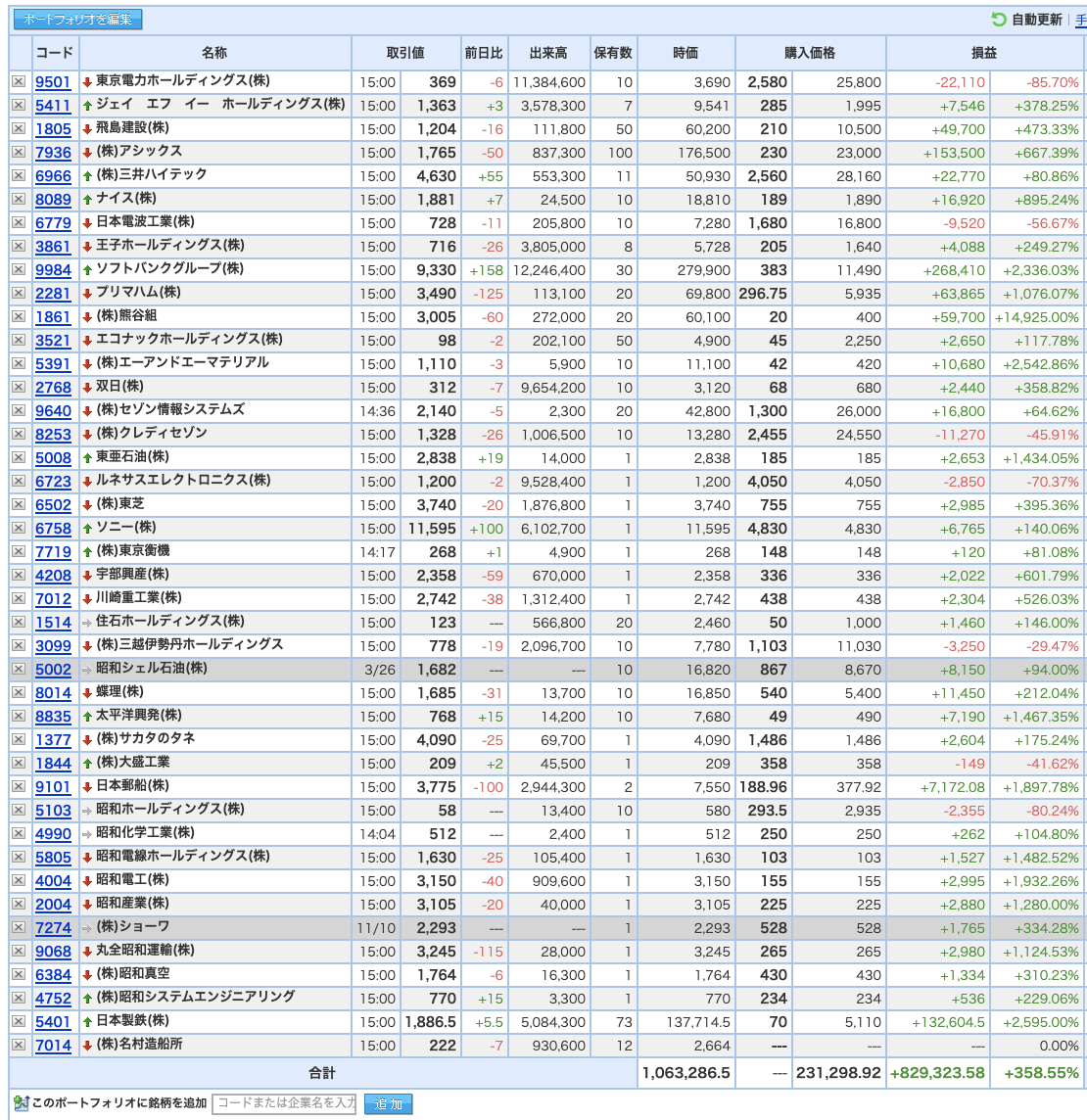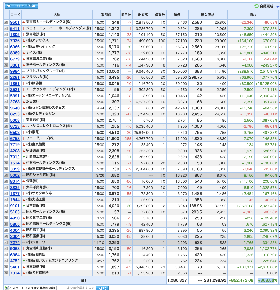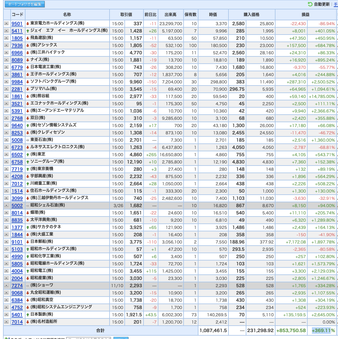 豊嶋康子ミニ投資___¥1,086,327(+368.56%)