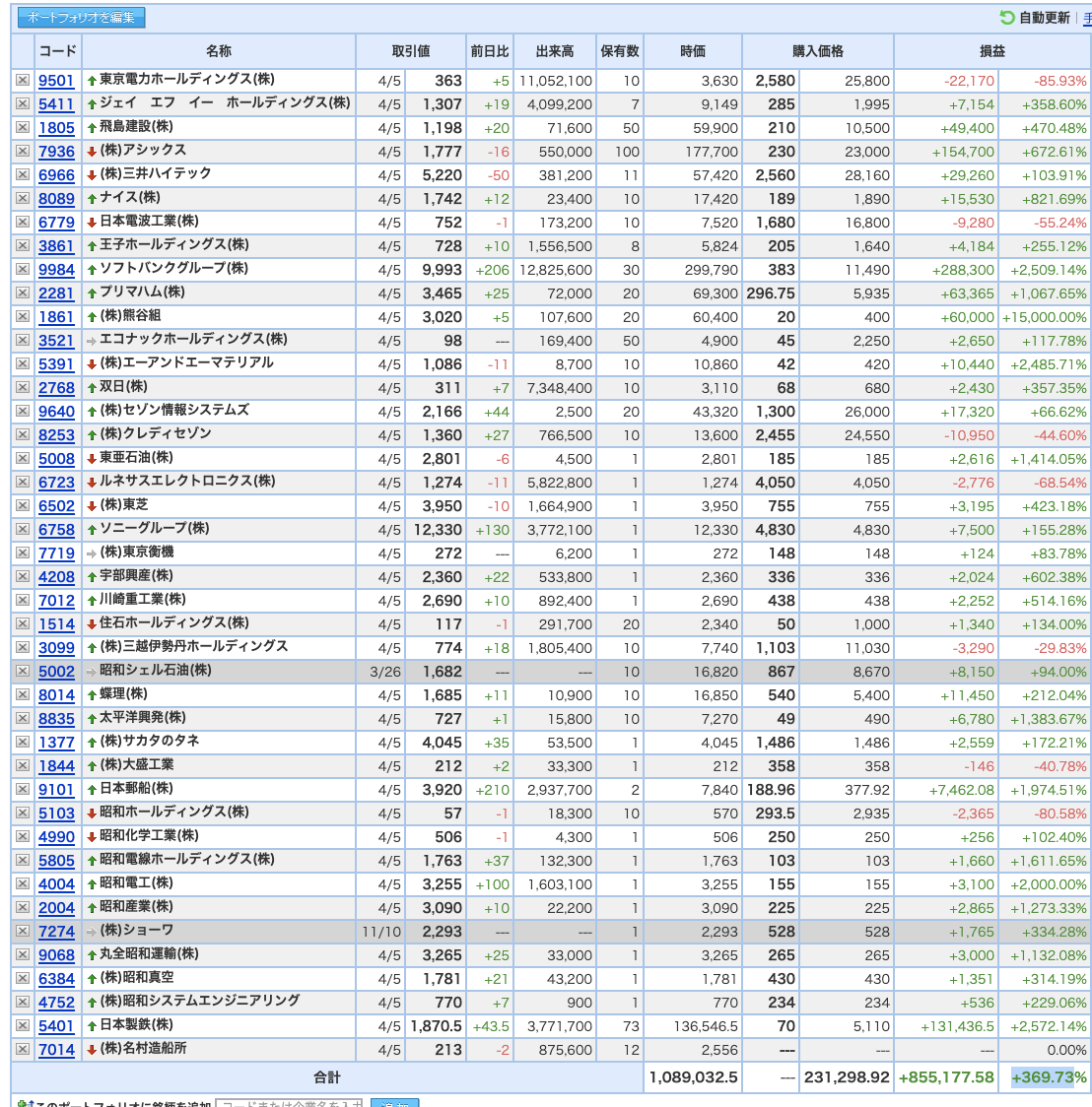 豊嶋康子ミニ投資___¥1,097,594(+373.48%)
