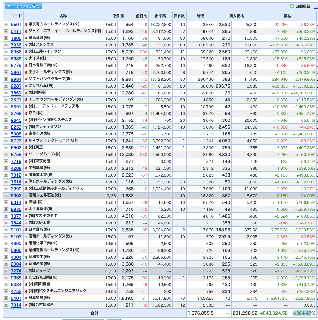 豊嶋康子ミニ投資___¥1,076,855.5(+364.47%)