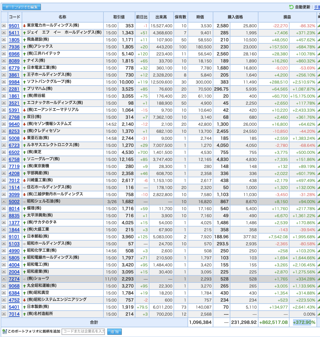 豊嶋康子ミニ投資___¥1,096,384(+372.90%)