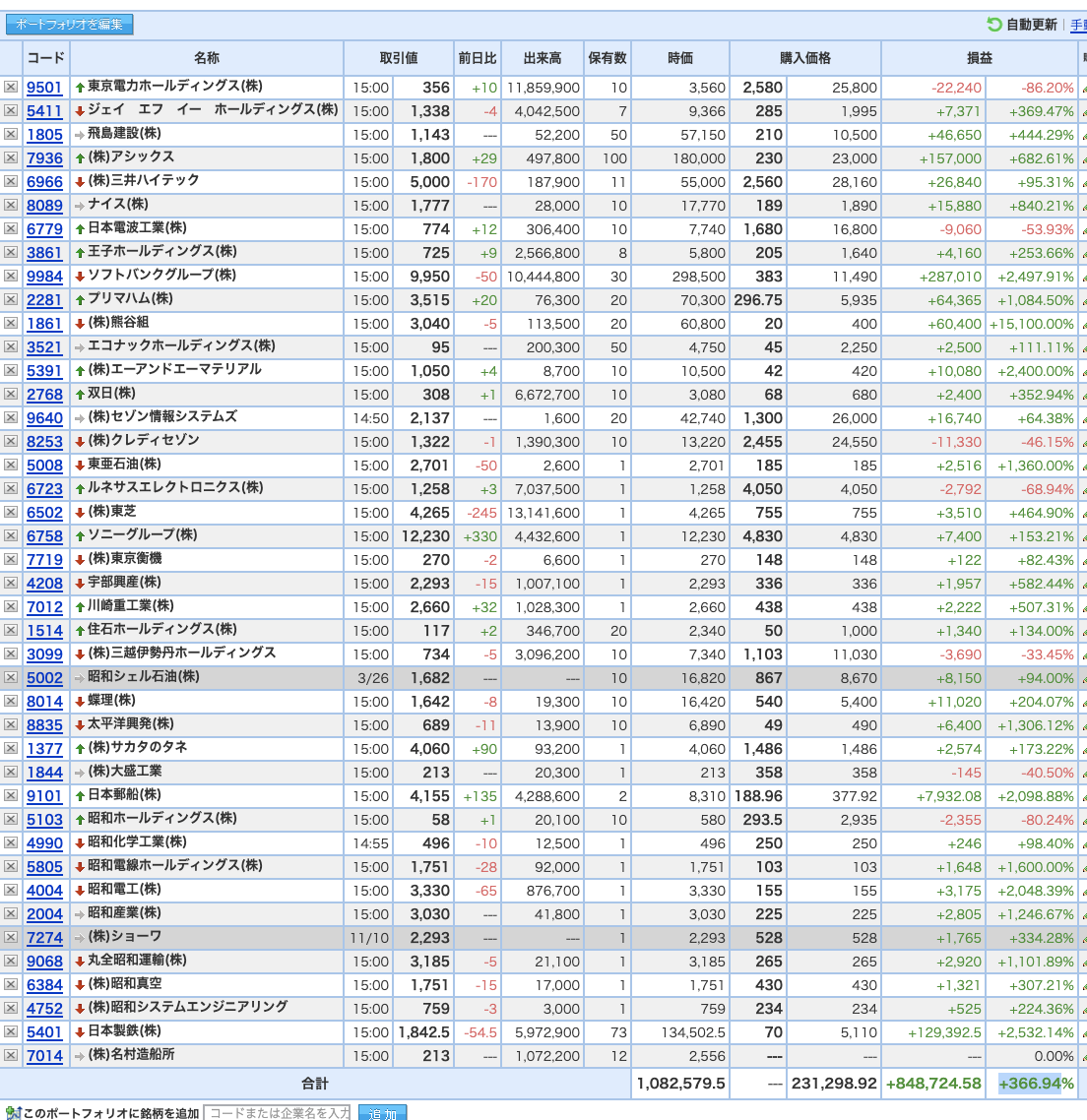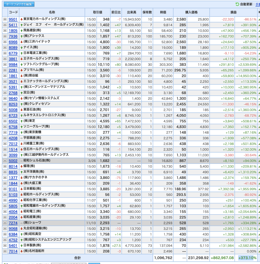 豊嶋康子ミニ投資___¥1,096,762(+373.10%)