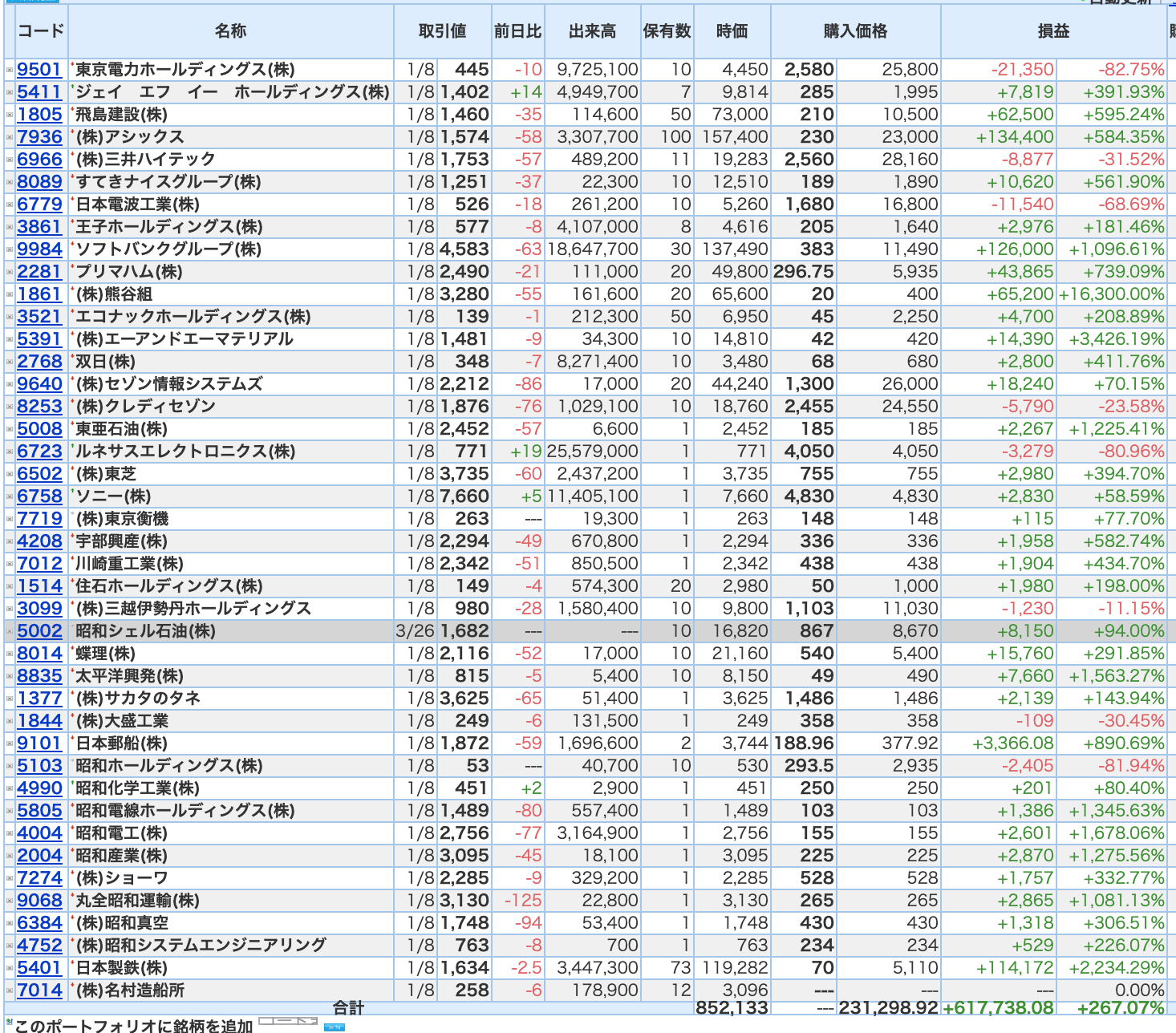 豊嶋康子ミニ投資___¥852,133(+267.07%)