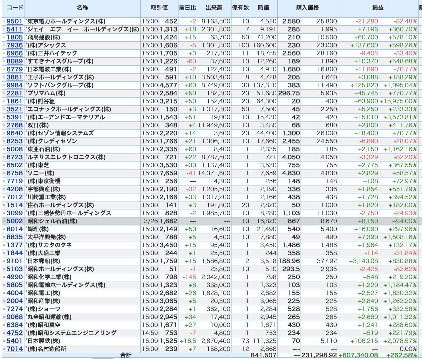 豊嶋康子ミニ投資___¥841,507(+262.58%)