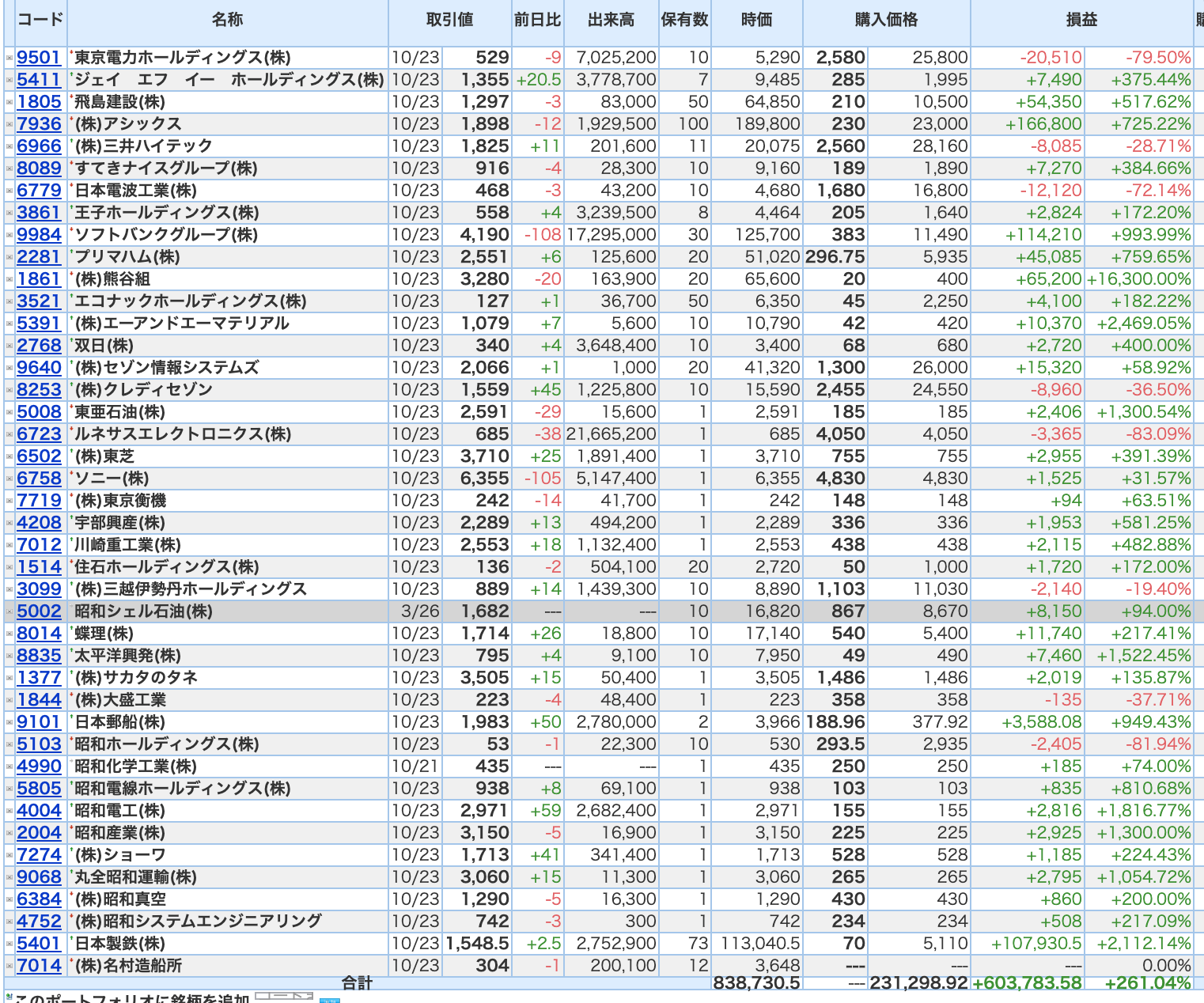豊嶋康子ミニ投資___¥838,730.5 (+261.04%)