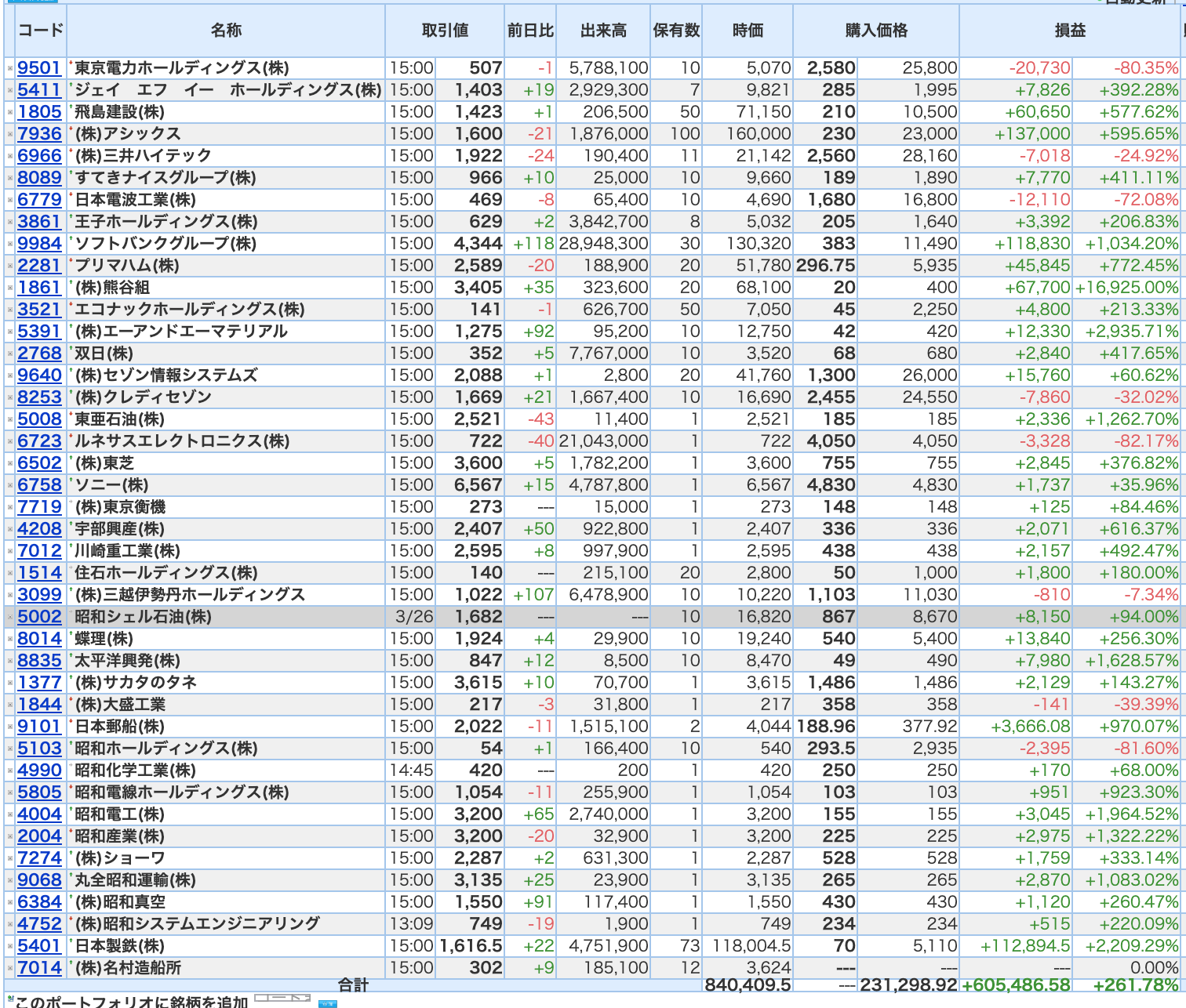 豊嶋康子ミニ投資___¥838,626( +261.12%)