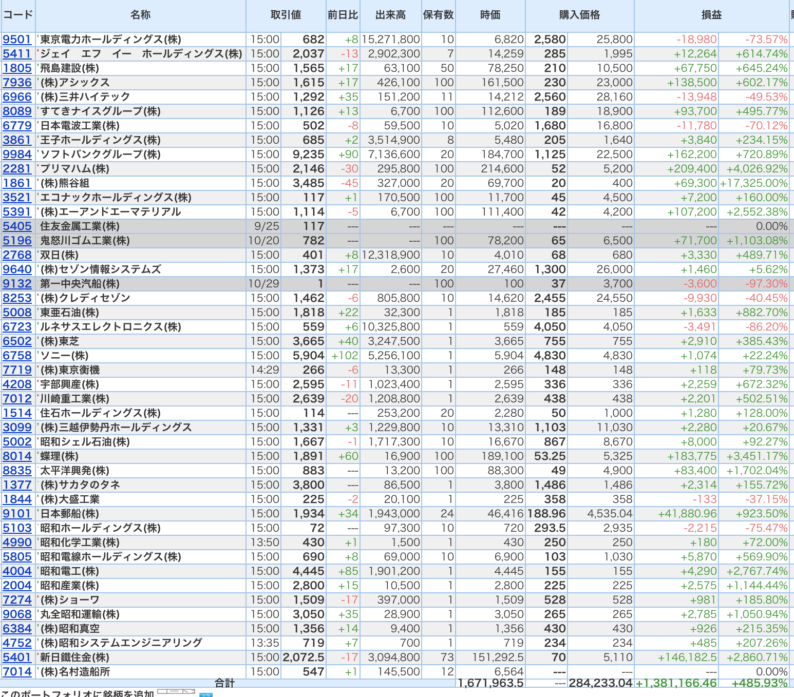 豊嶋康子ミニ投資【合計】___¥1,671,963.5(+485.93%)