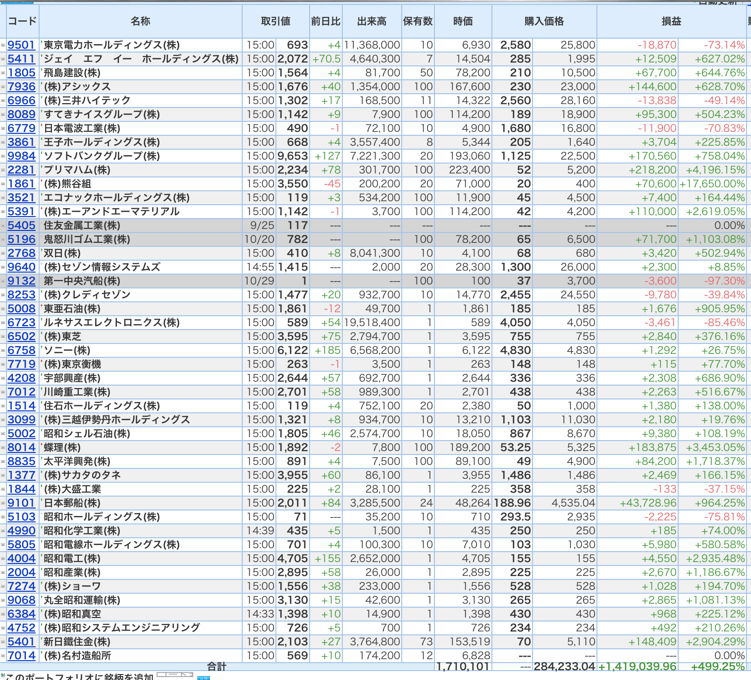 豊嶋康子ミニ投資【合計】___¥1,710,101(+499.25%)