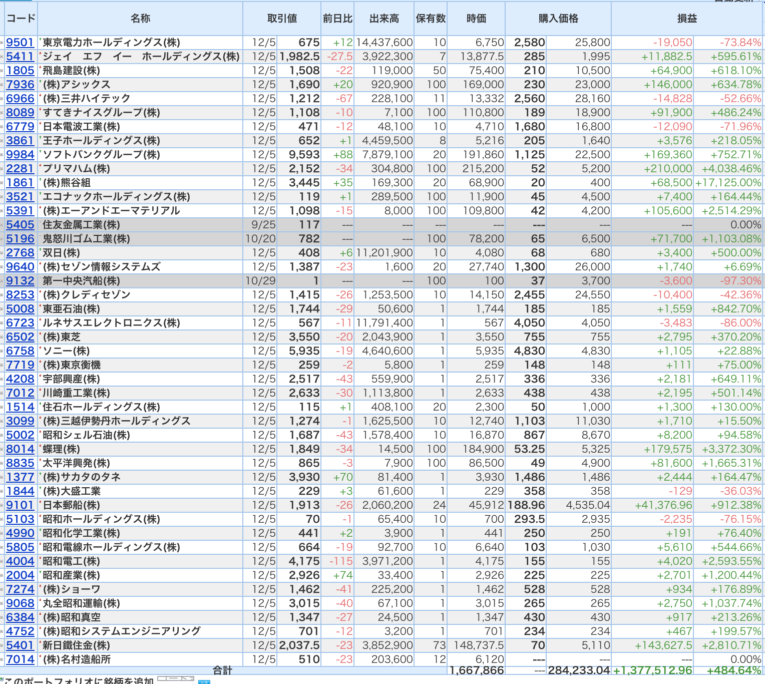 豊嶋康子ミニ投資【合計】___¥1,667,866(+484.64%)