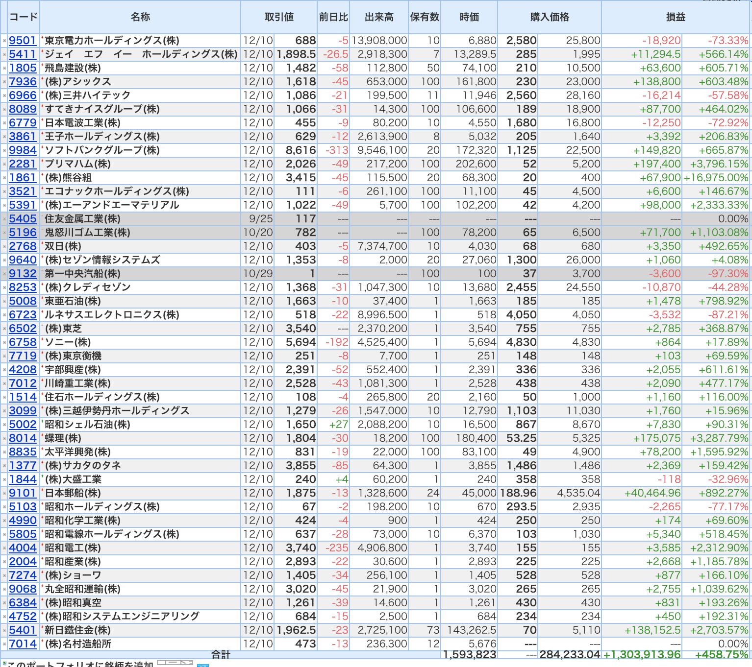 豊嶋康子ミニ投資【合計】___¥1,593,823(+458.75%)
