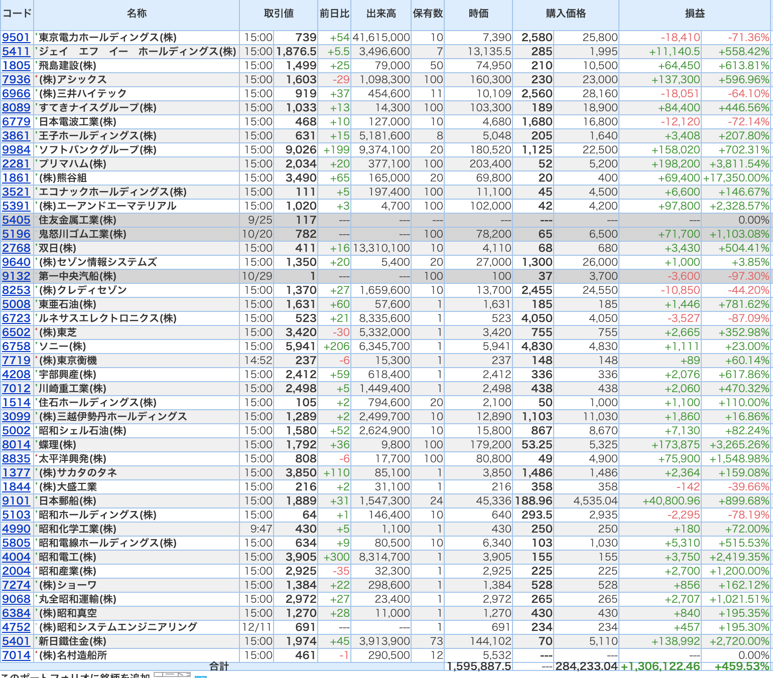 豊嶋康子ミニ投資【合計】___¥1,595,887.5(+459.53%)