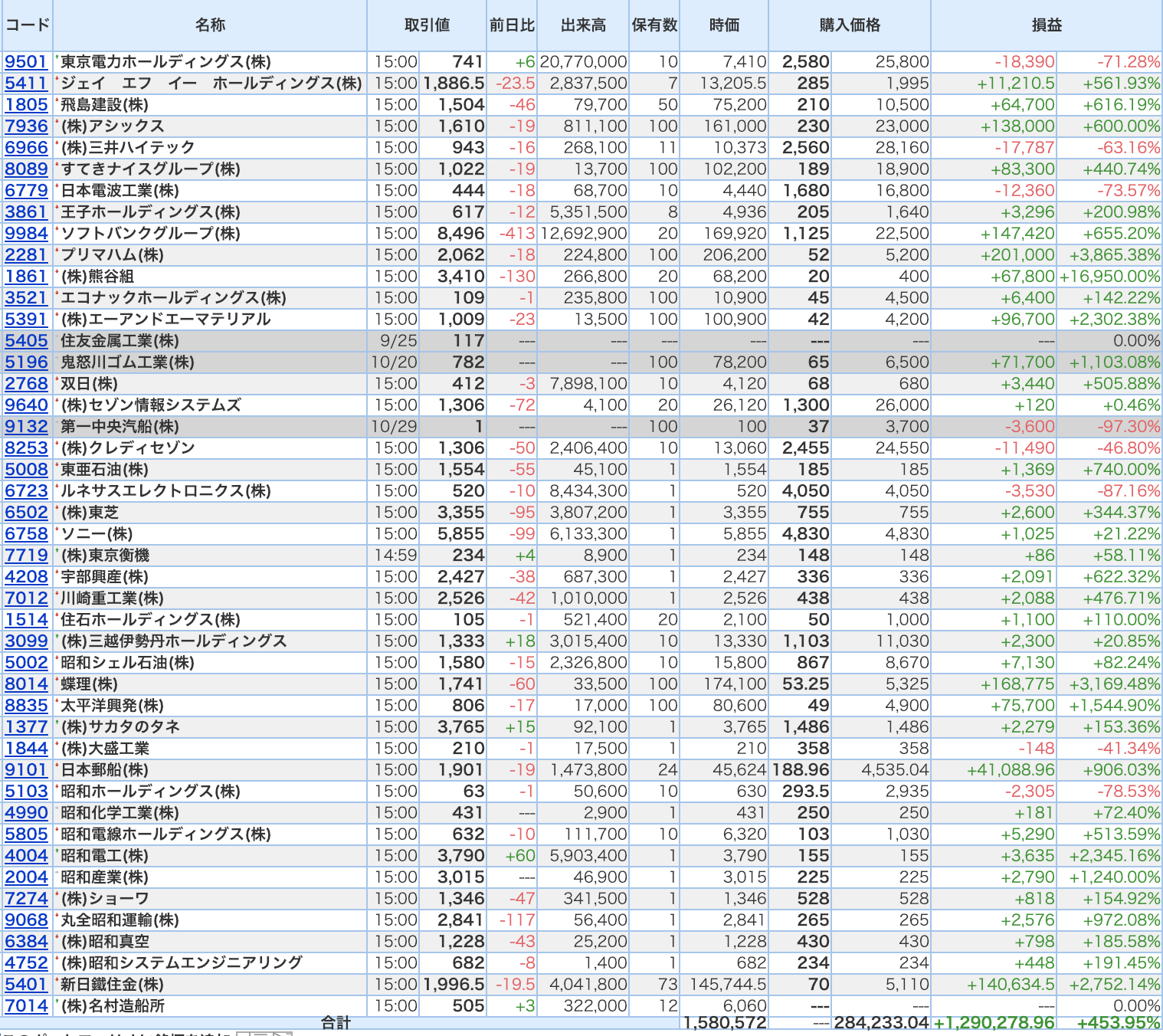 豊嶋康子ミニ投資【合計】___¥1,580,572(+453.95%)
