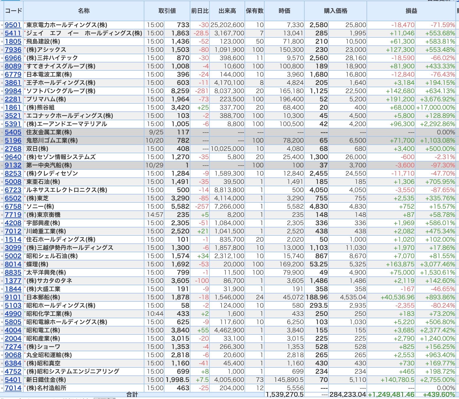 豊嶋康子ミニ投資【合計】___¥1,539,270.5(+439.60%)