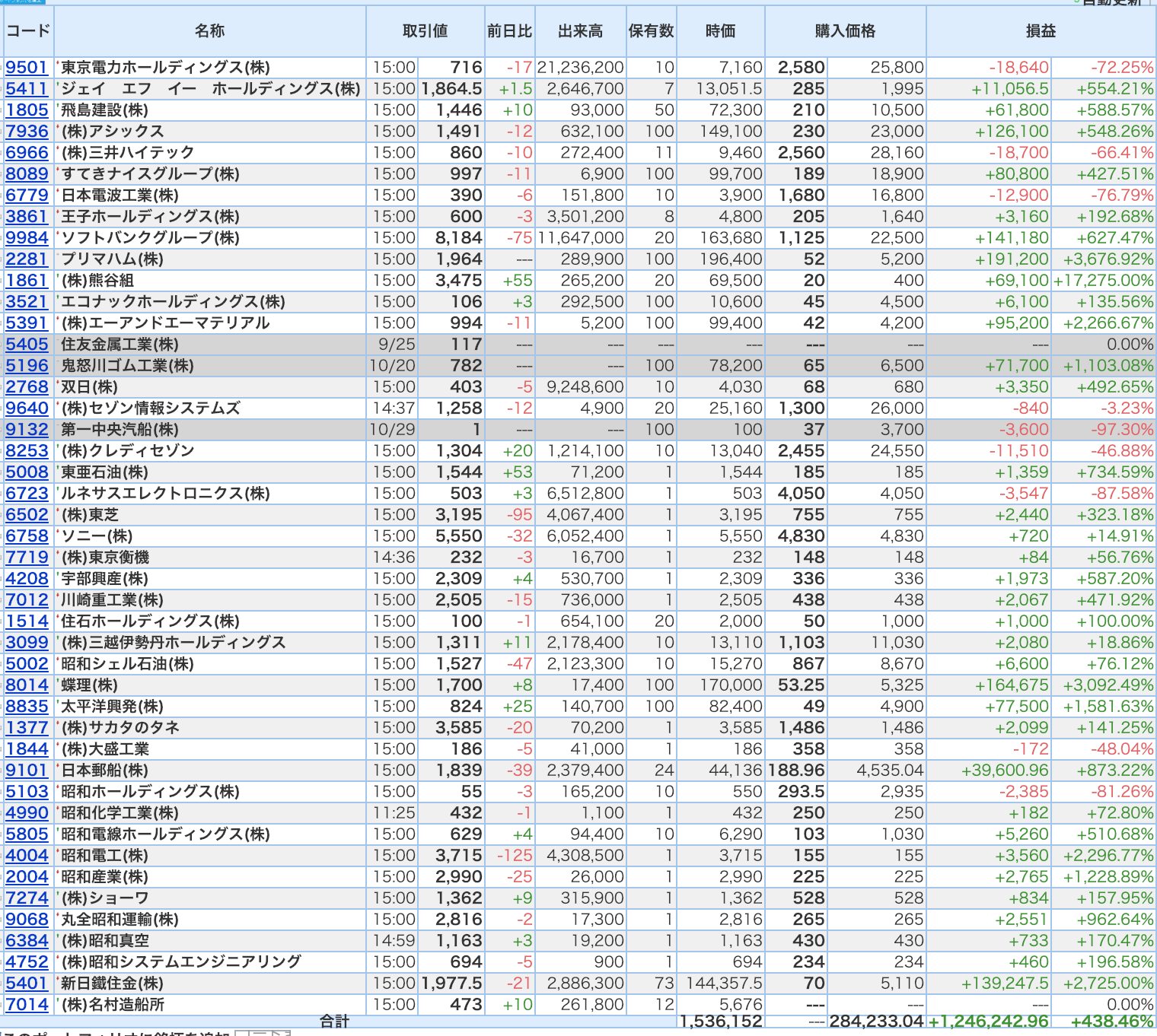 豊嶋康子ミニ投資【合計】___¥1,536,152(+438.46%)