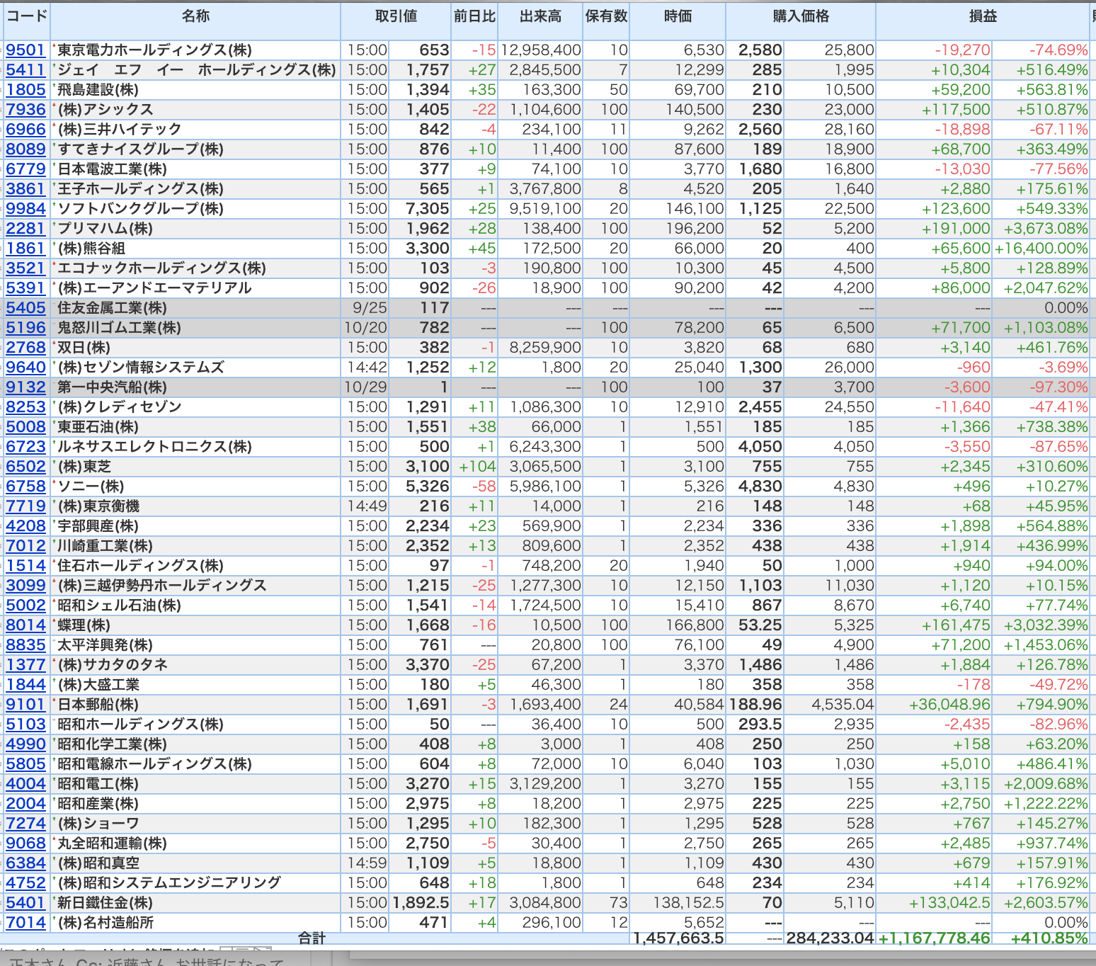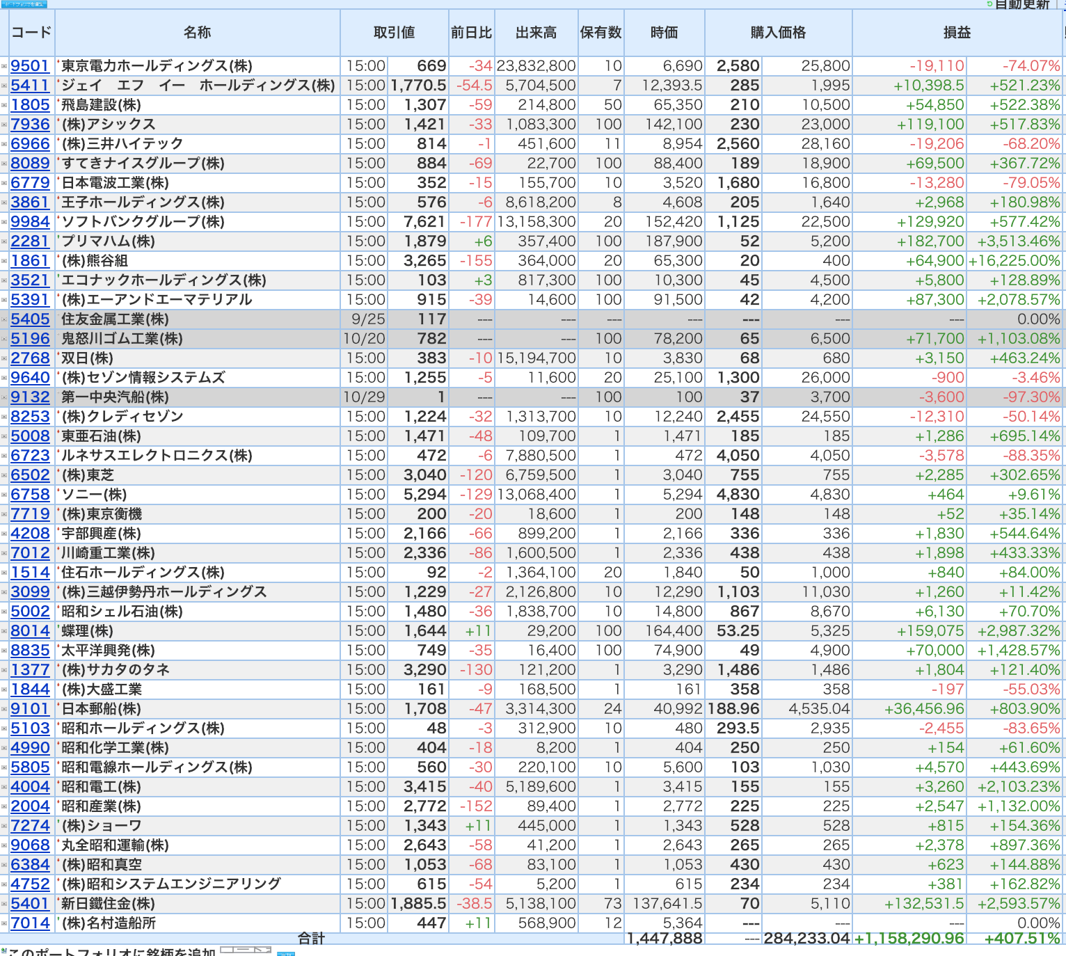豊嶋康子ミニ投資【合計】___¥1,457,663.5(+410.85%)