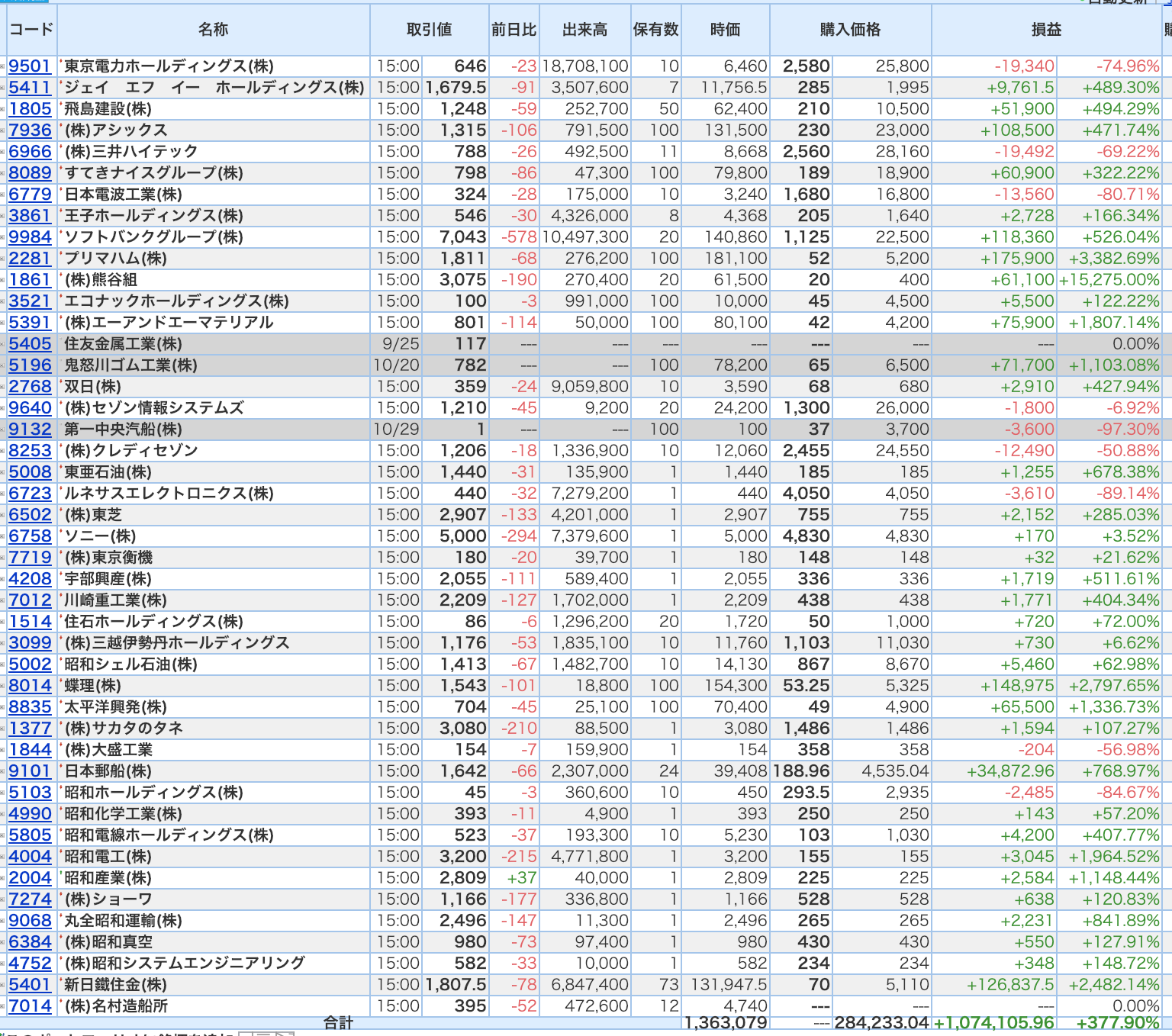 豊嶋康子ミニ投資【合計】___¥1,363,079(+377.90%)