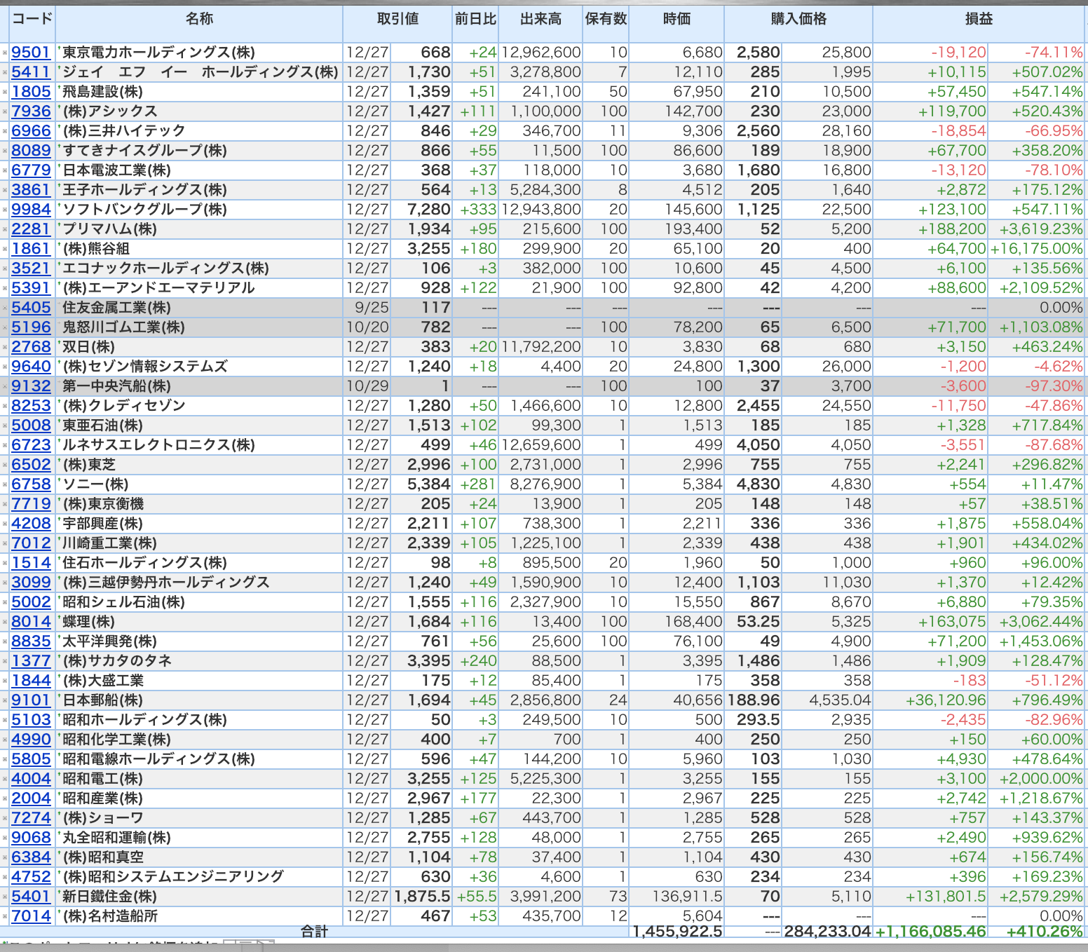 豊嶋康子ミニ投資【合計】___¥1,455,922.5(+410.26%)