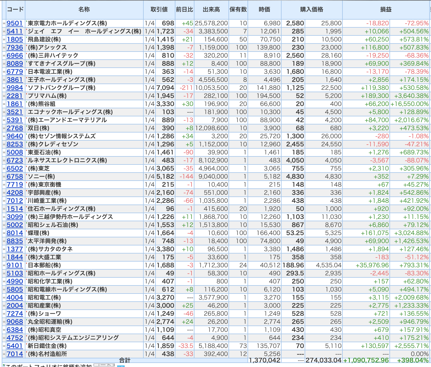 豊嶋康子ミニ投資【合計】___¥1,370,042(+398.04%) 2019年もよろしくお願い申し上げます。豊嶋康子